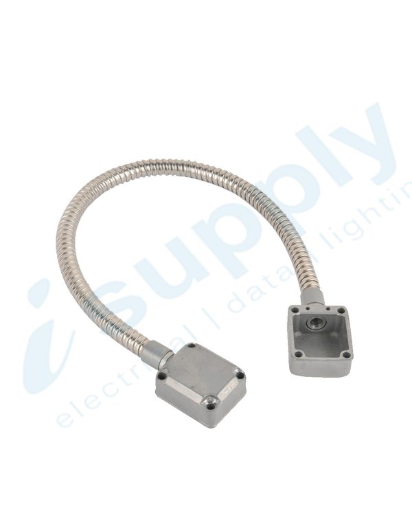 Armored stainless steel Loop with flush mount heads for wire termination inside door and frame.