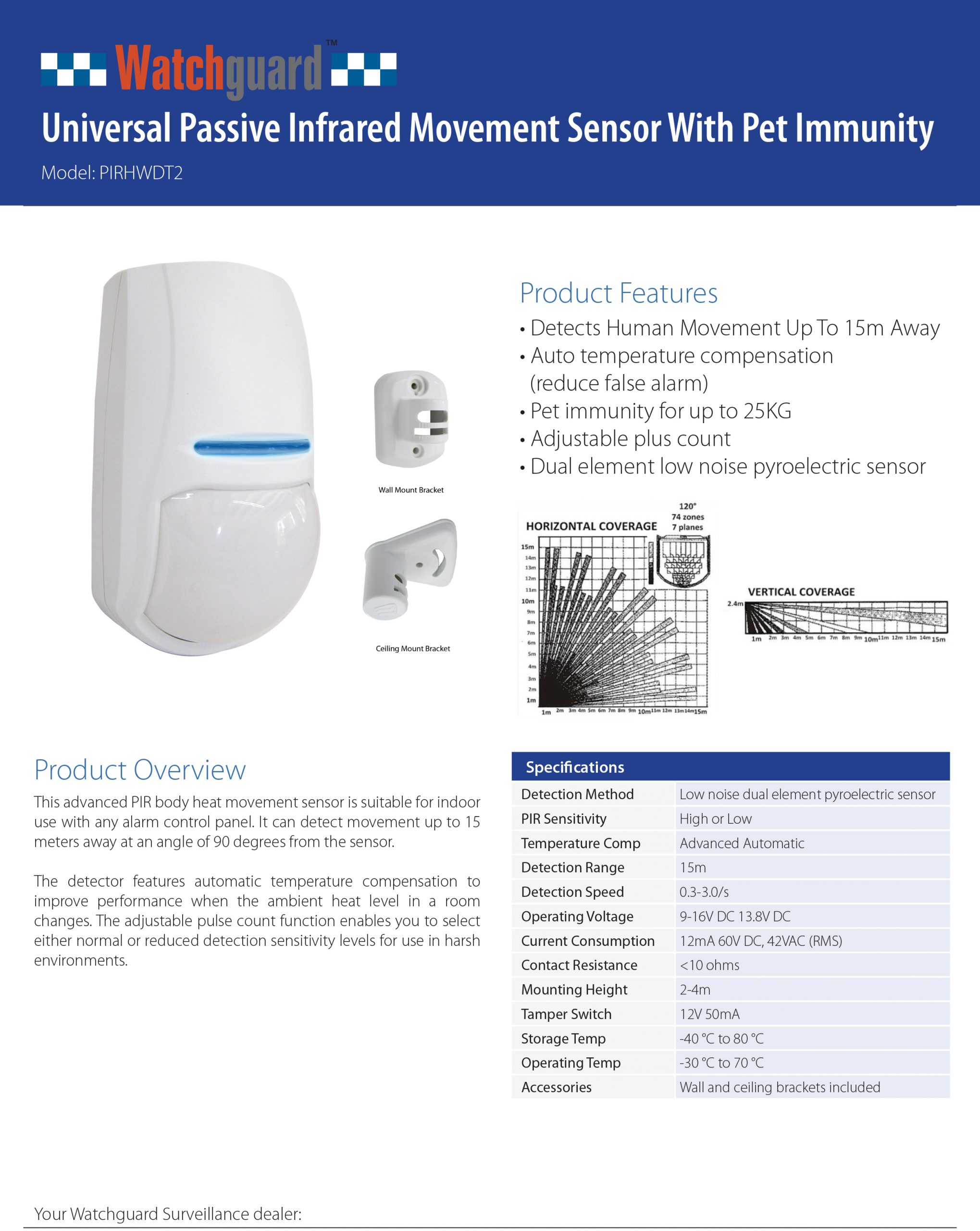 Watchguard Universal Passive Infrared Movement Sensor With Pet Immunity PIRHWDT2