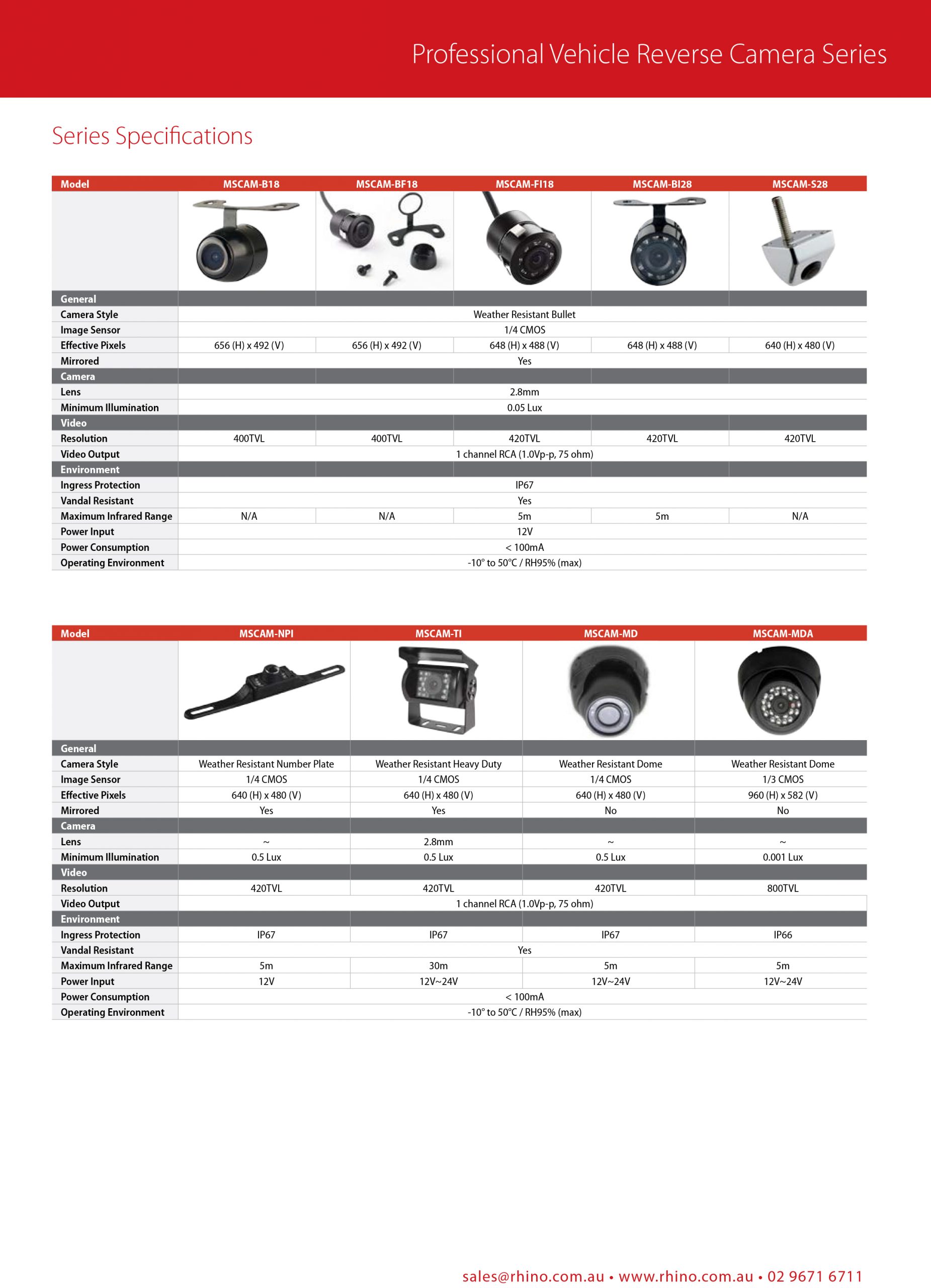 Rhino Heavy Duty Vehicle Infrared Reverse Camera MSCAM-TI
