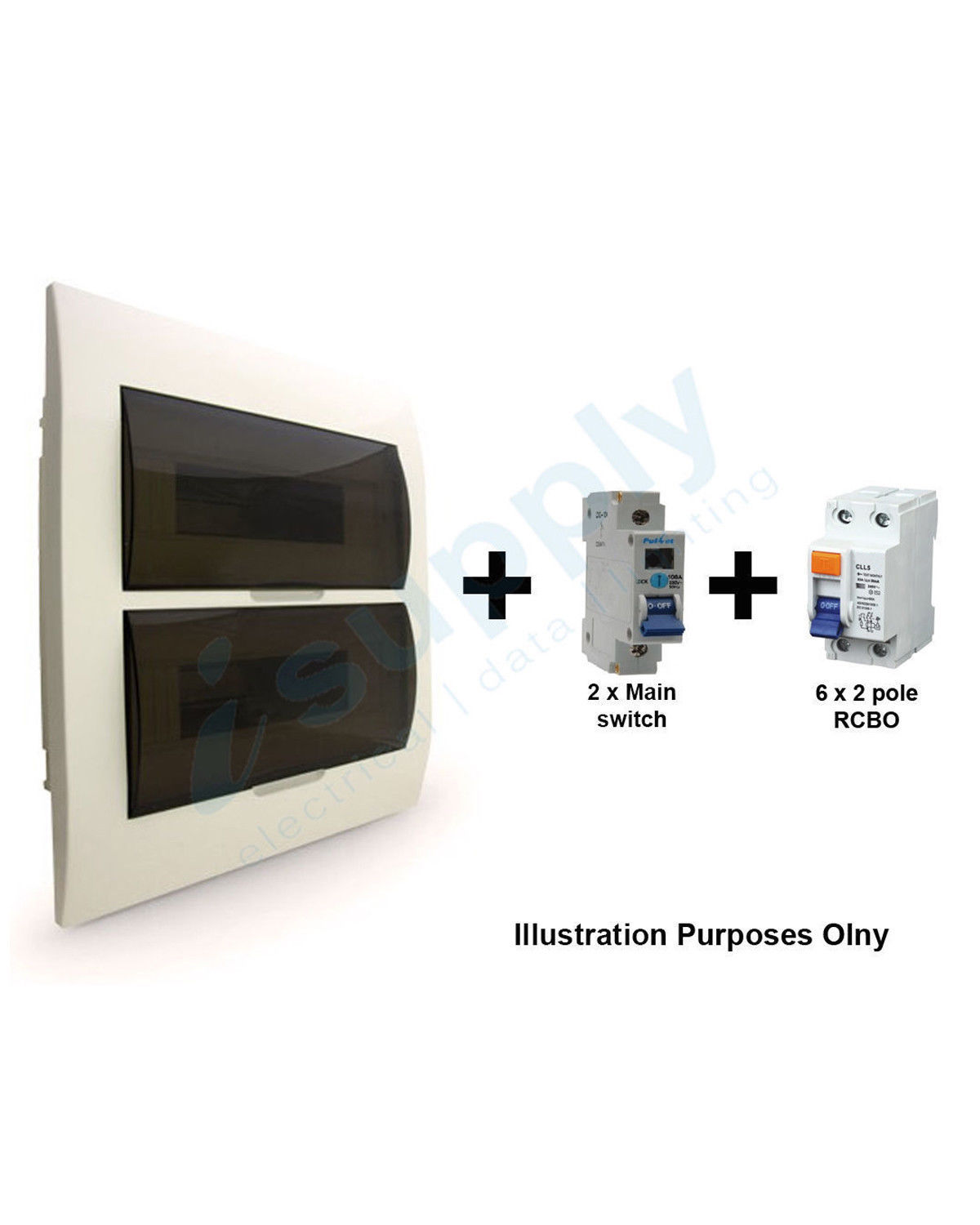 COMPLETE FLUSH MOUNTED DISTRIBUTION 24 POLE BOARD COMPLETE WITH SAFETY SWITCHES RCD