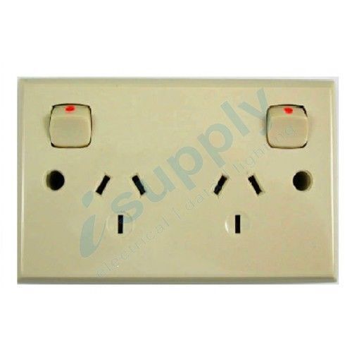 Double Power Point, Double Pole, Beige, 240 Volt 10 Amp