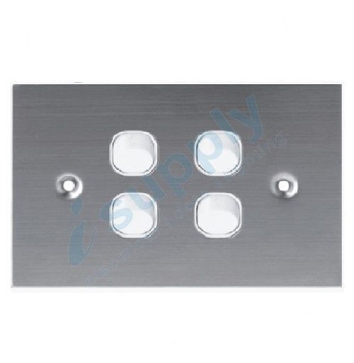 DEXTON FLAT STAINLESS STEEL QUAD LIGHT SWITCH – 4 GANG SLIM DXSSW4