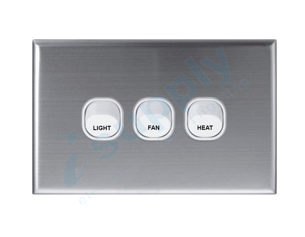 DEXTON Slim 3 Gang Wall Switch – LIGHT FAN HEAT – Slim Stainless Steel Cover DXWS/LFH/SC
