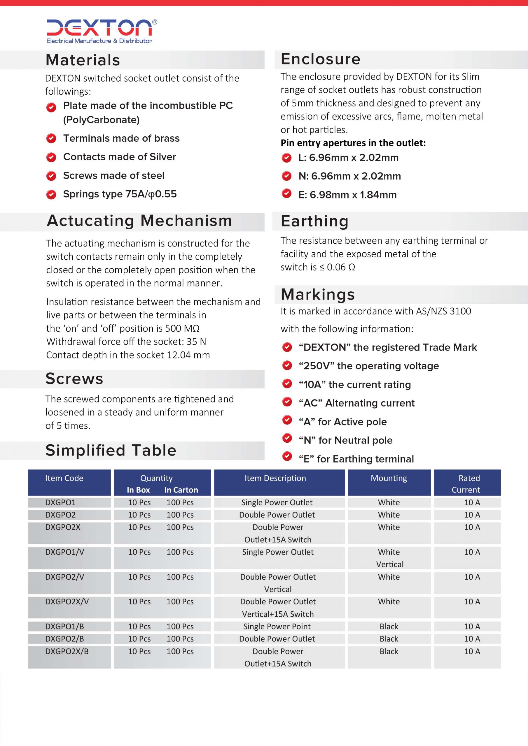 Rating: 250 Volts, 10Amp