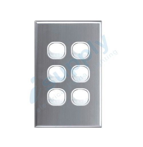 6 Gang Single Light Switch in White with 1 x silver brushed stainless steel cover