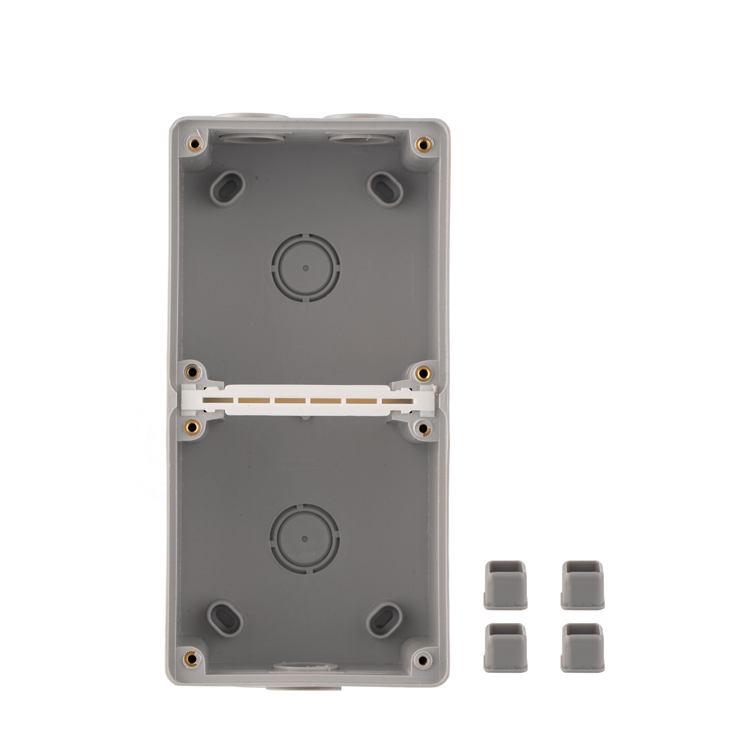 The Transco Isolator 4 Pin Combination 20A IP66 66C420 is designed for 500V use and provides IP66 protection. Constructed from impact-resistant polycarbonate and finished in grey, it features four round pins (2x active, neutral, and earth). The unit offers cable entries at the top (25mm x 2) and back (25mm x 2), includes one protective cover, and is lockable for enhanced security. It accommodates 6mm x 4 cables and has dimensions of W102mm x L190mm x D77mm. This isolator adheres to AS 60529:2004/NZS IEC 60947.1:2015 Annex C, AS/NZS 3121:2002, and AS/NZS 3100:2009+A1-A4 standards.