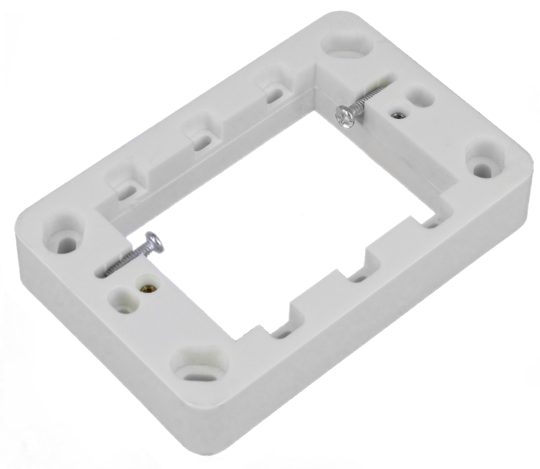 This product is offered in white and black and is constructed from polycarbonate. It features a fixing center of 84mm and is available in depths of 20mm. It is intended for surface mounting on walls in either horizontal or vertical positions. The dimensions are W76mm x L119mm, and it is compatible with Transco Wafer series GPO or wall plates.