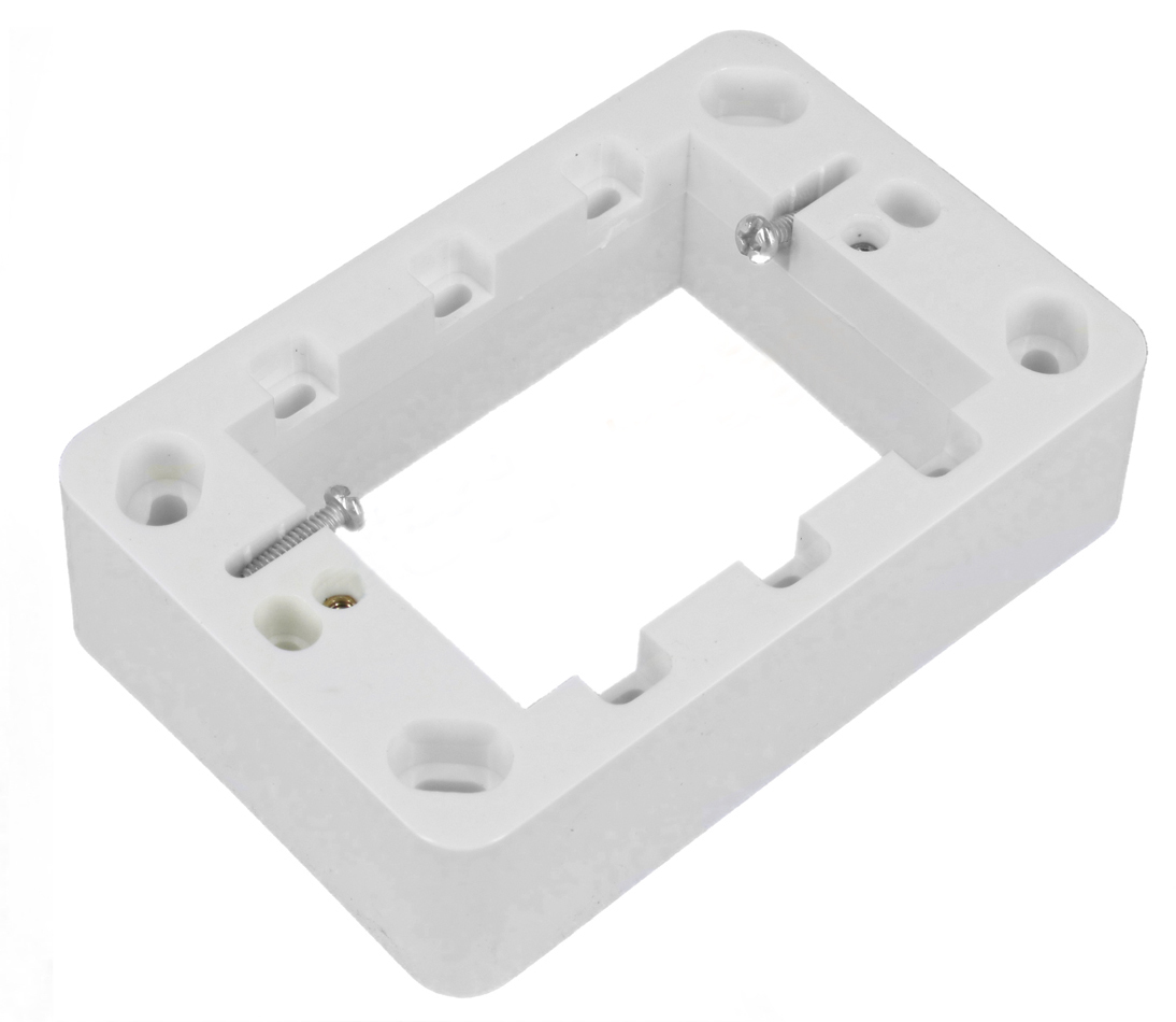 Available in white and black, this product is made of polycarbonate and has a fixing center of 84mm. It comes in depths of 30mm and is designed for surface mounting on walls, either horizontally or vertically. The dimensions are W76mm x L119mm, and it is compatible with Transco Wafer series GPO or wall plates.