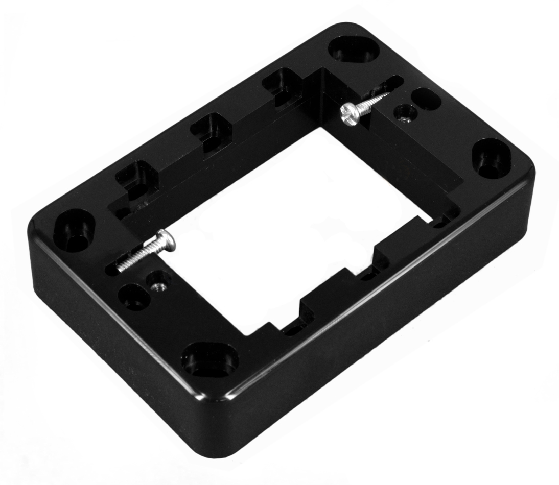 This product is offered in black and is constructed from polycarbonate. It features a fixing center of 84mm and is available in depths of 24mm. It is intended for surface mounting on walls in either horizontal or vertical positions. The dimensions are W76mm x L119mm, and it is compatible with Transco Wafer series GPO or wall plates.