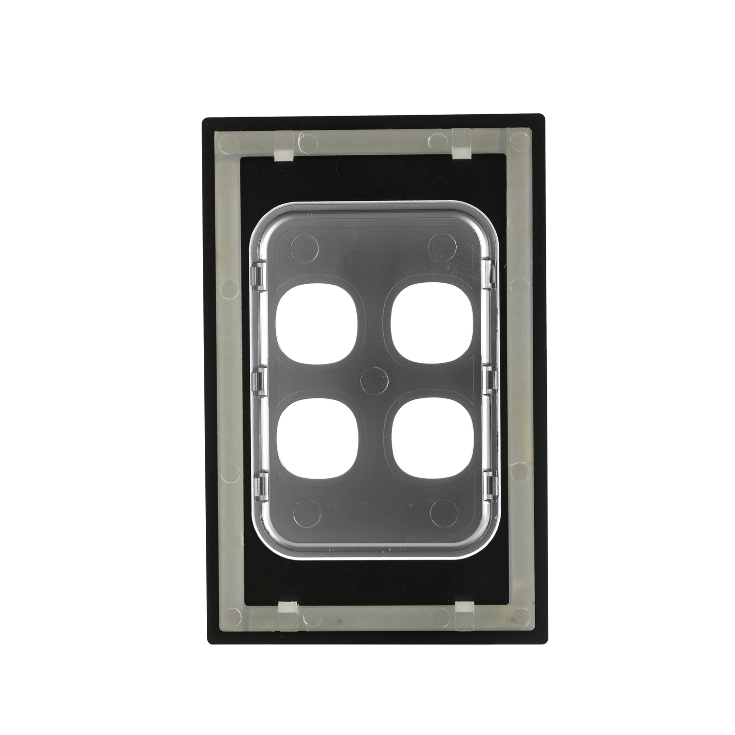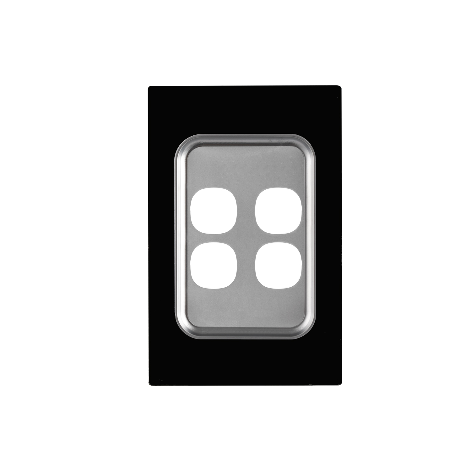 A sleek and modern ultra-thin switch cover, offered in one, two, three, and four gang options, all mounted on a thick plate.