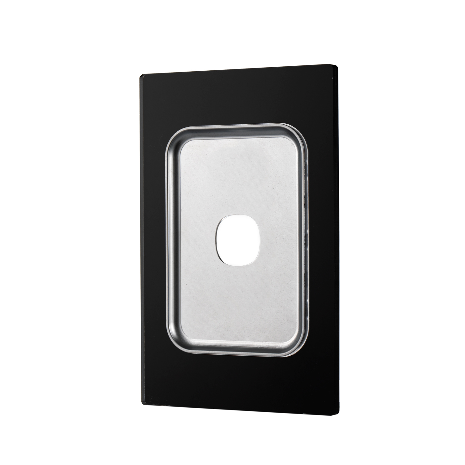 A sleek and modern ultra-thin switch cover, offered in one, two, three, and four gang options, all mounted on a thick plate.
