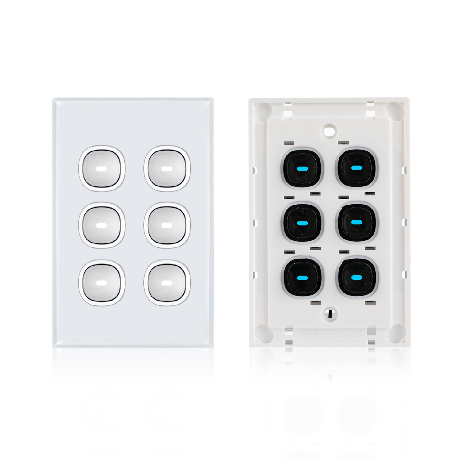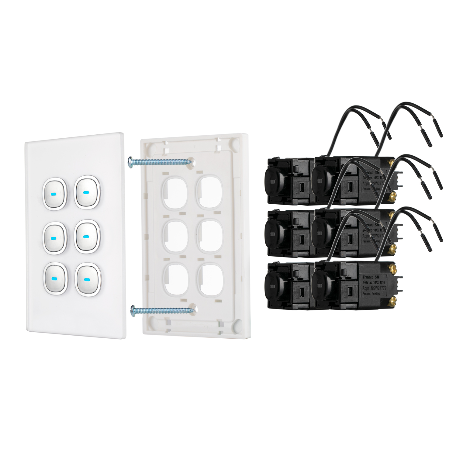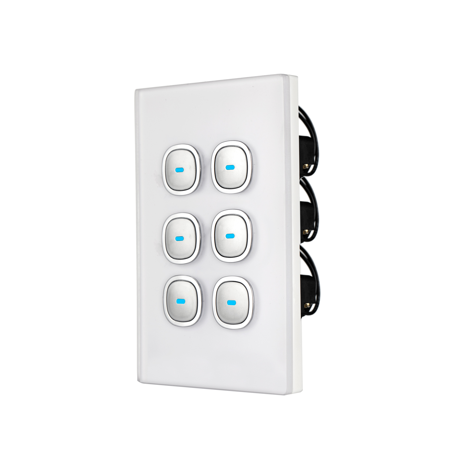 This product operates on alternating current (a.c.) with a single power phase, and is rated for 10A at 240V. It features a moulded top cover and underbody made from impact-resistant polycarbonate and acrylic, available in Pure Snow and Midnight Black. The socket switch is a push-button with LED illumination and accommodates 2.5mm x 4 cables. It measures W72mm x L116mm x D20mm and is designed for horizontal wall mounting with fixing centers of 84mm. It fits all general brackets and mounting blocks and complies with AS/NZS3100, AS/NZS3112, and AS/NZS3133 standards.