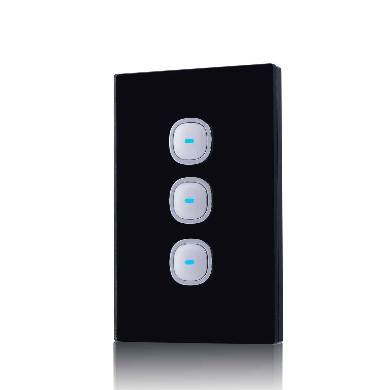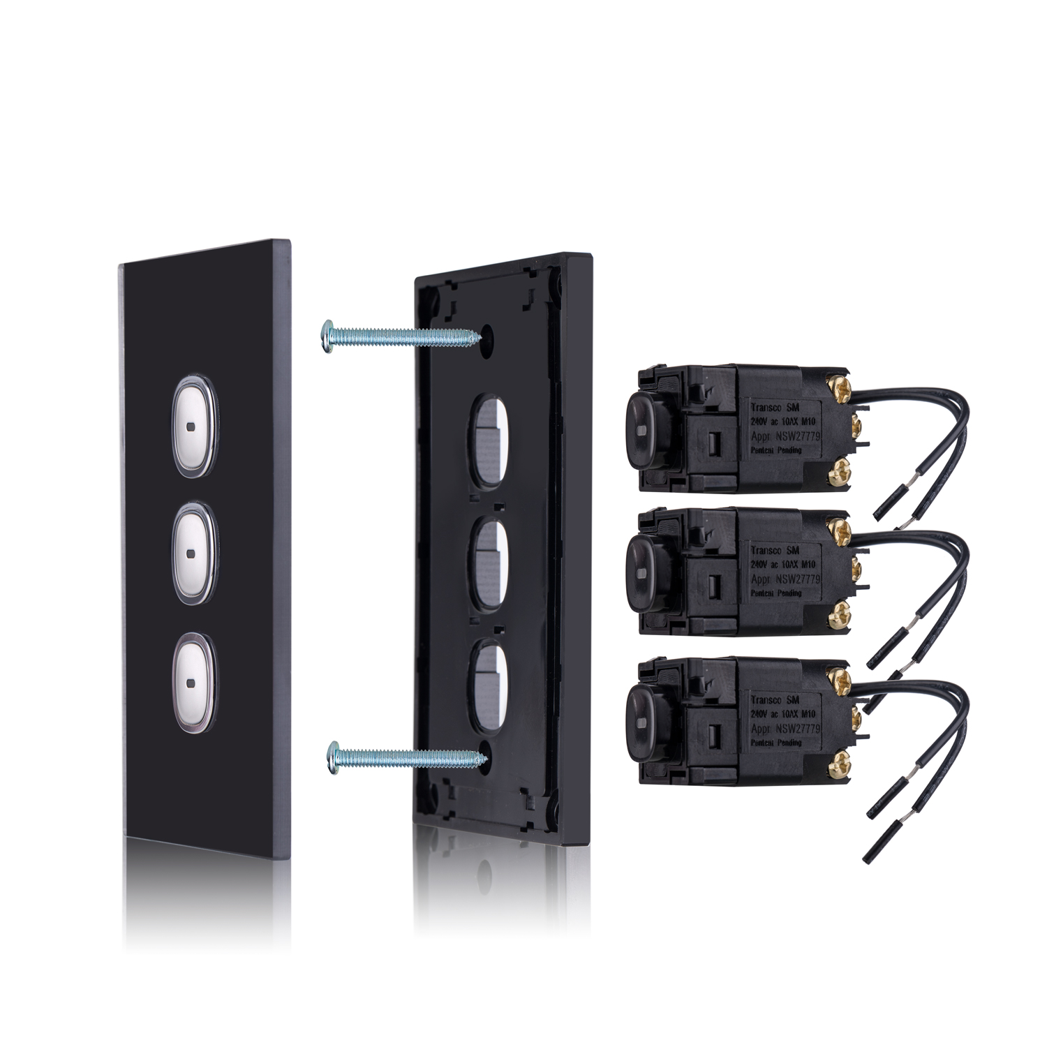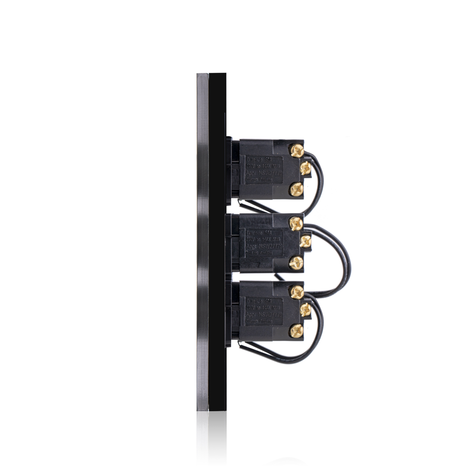 Transco Glass three gang switch with built-in LED push button black S3G/B