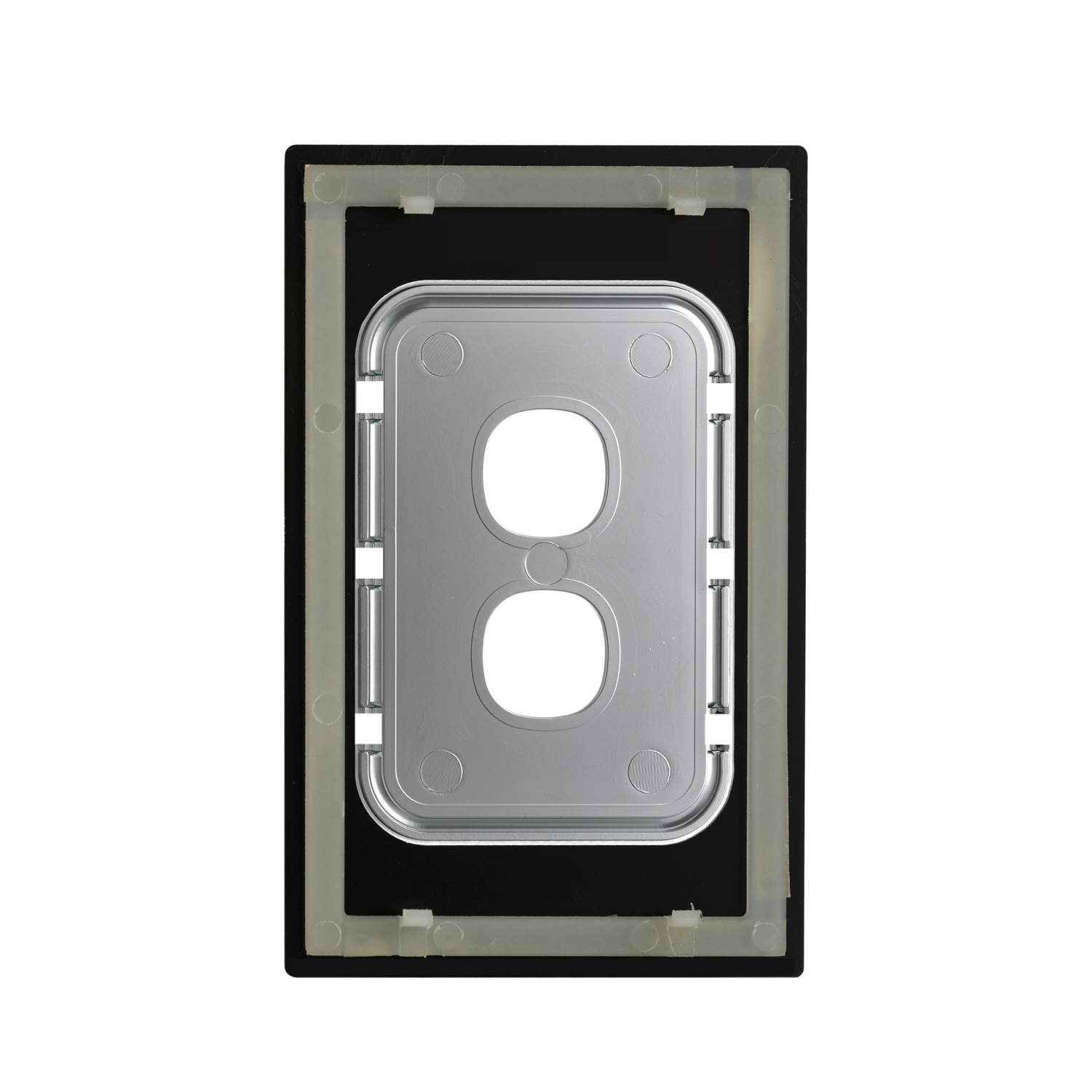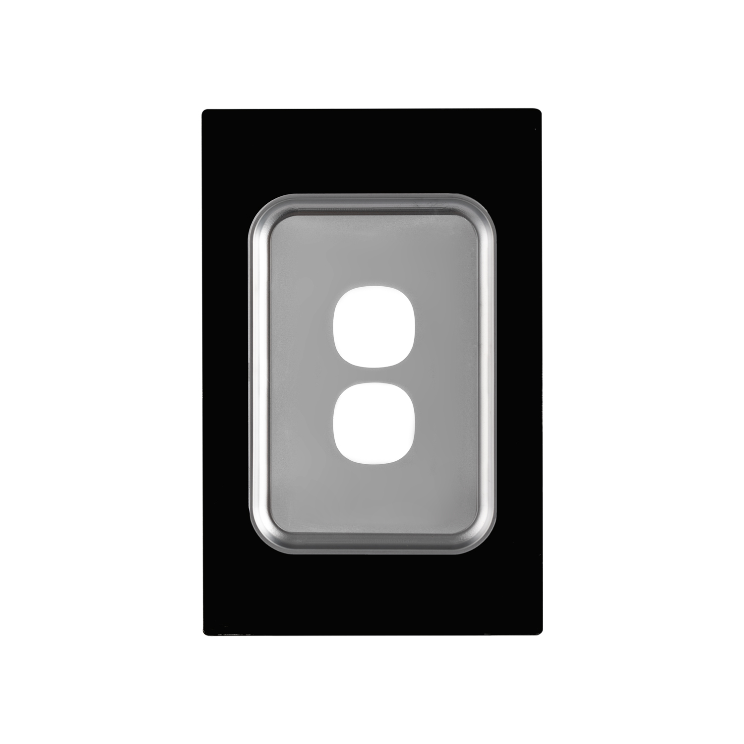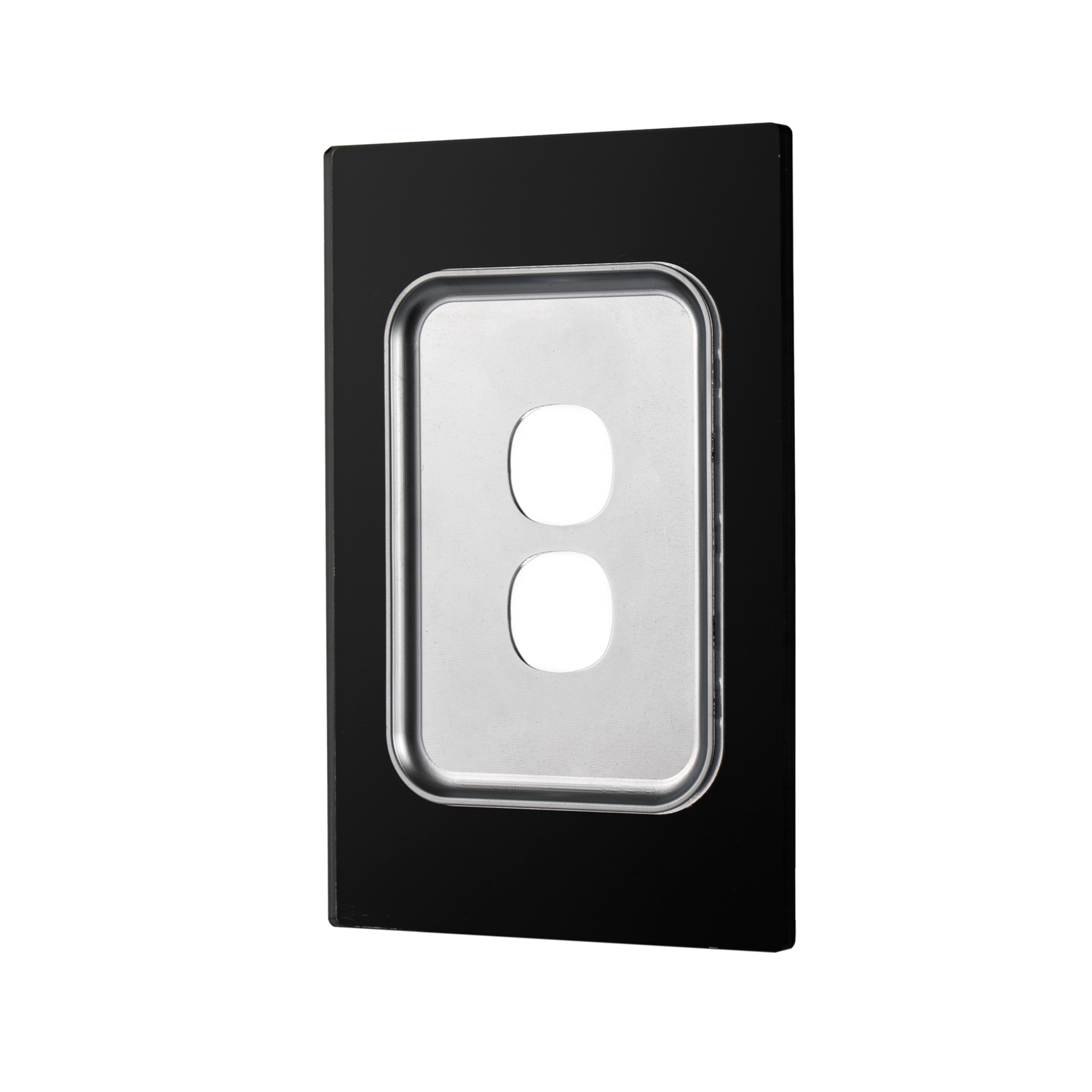 A sleek and modern ultra-thin switch cover, offered in one, two, three, and four gang options, all mounted on a thick plate.