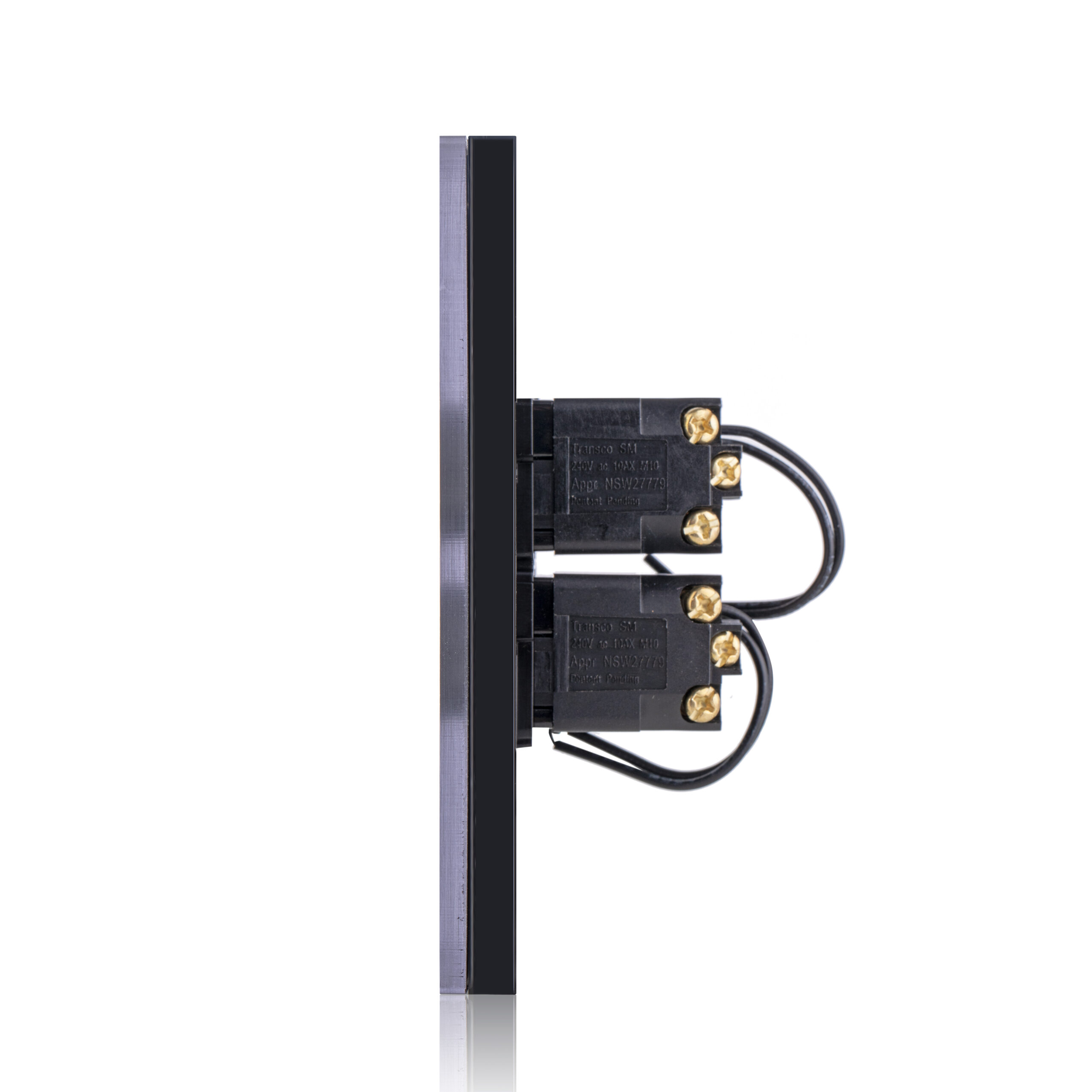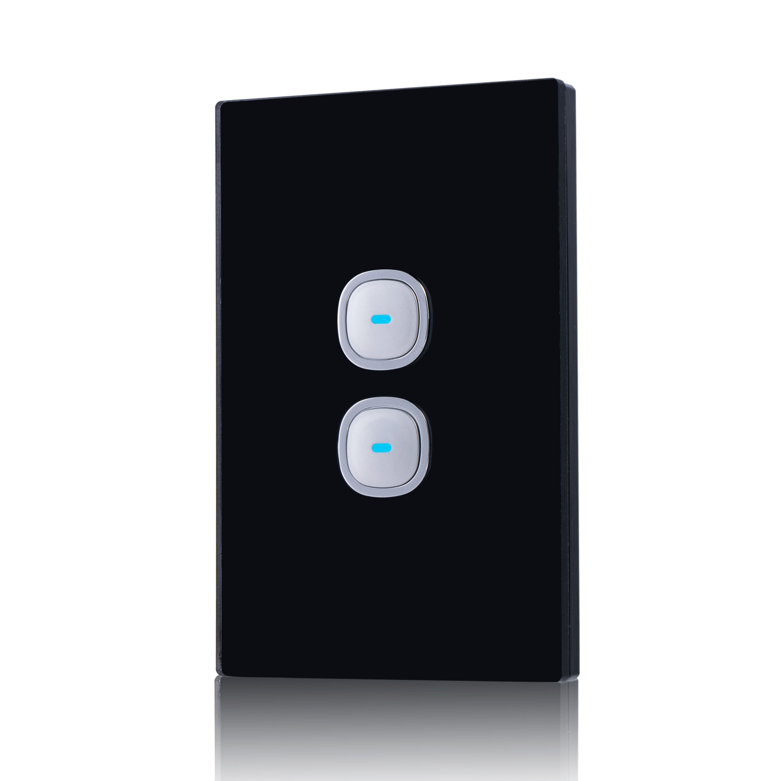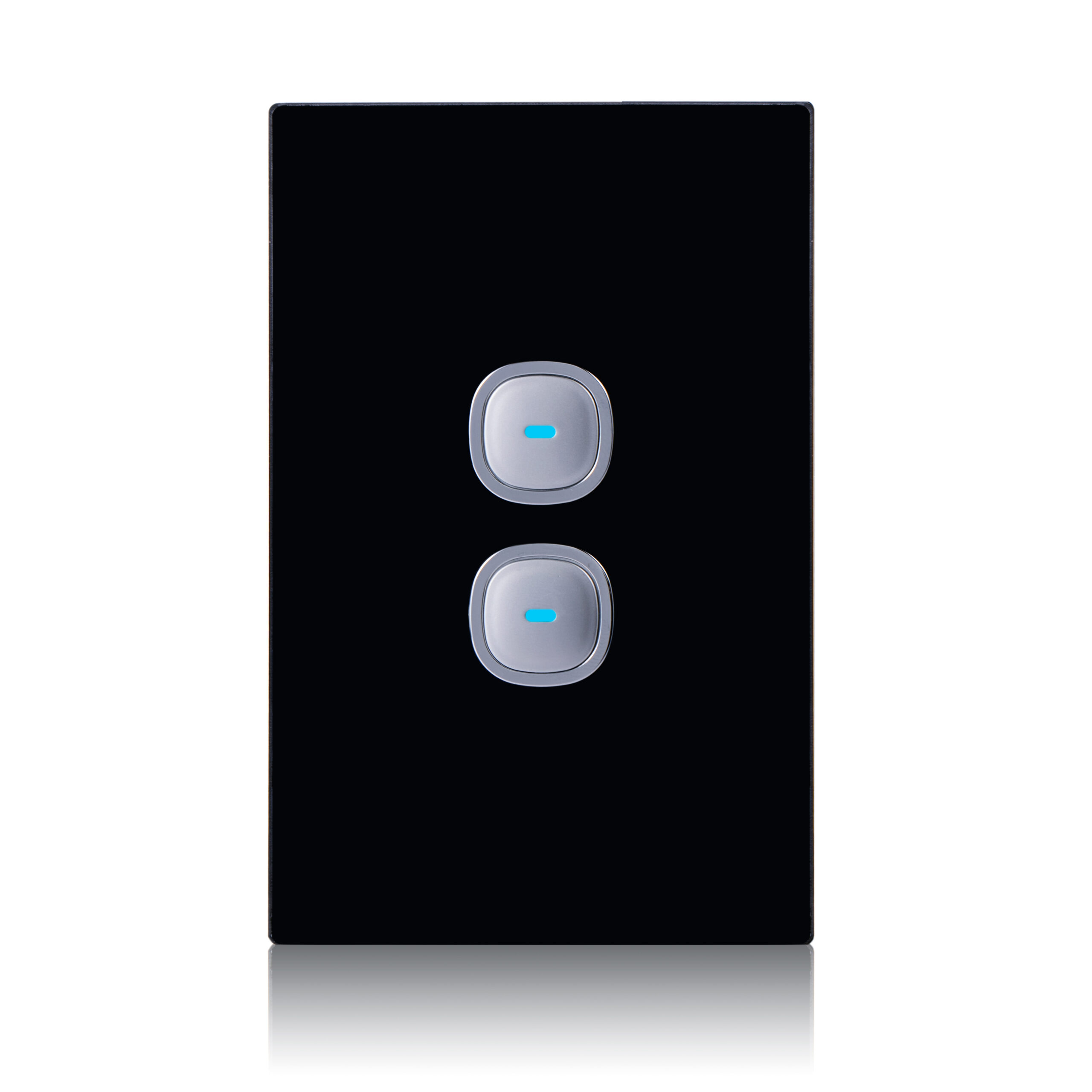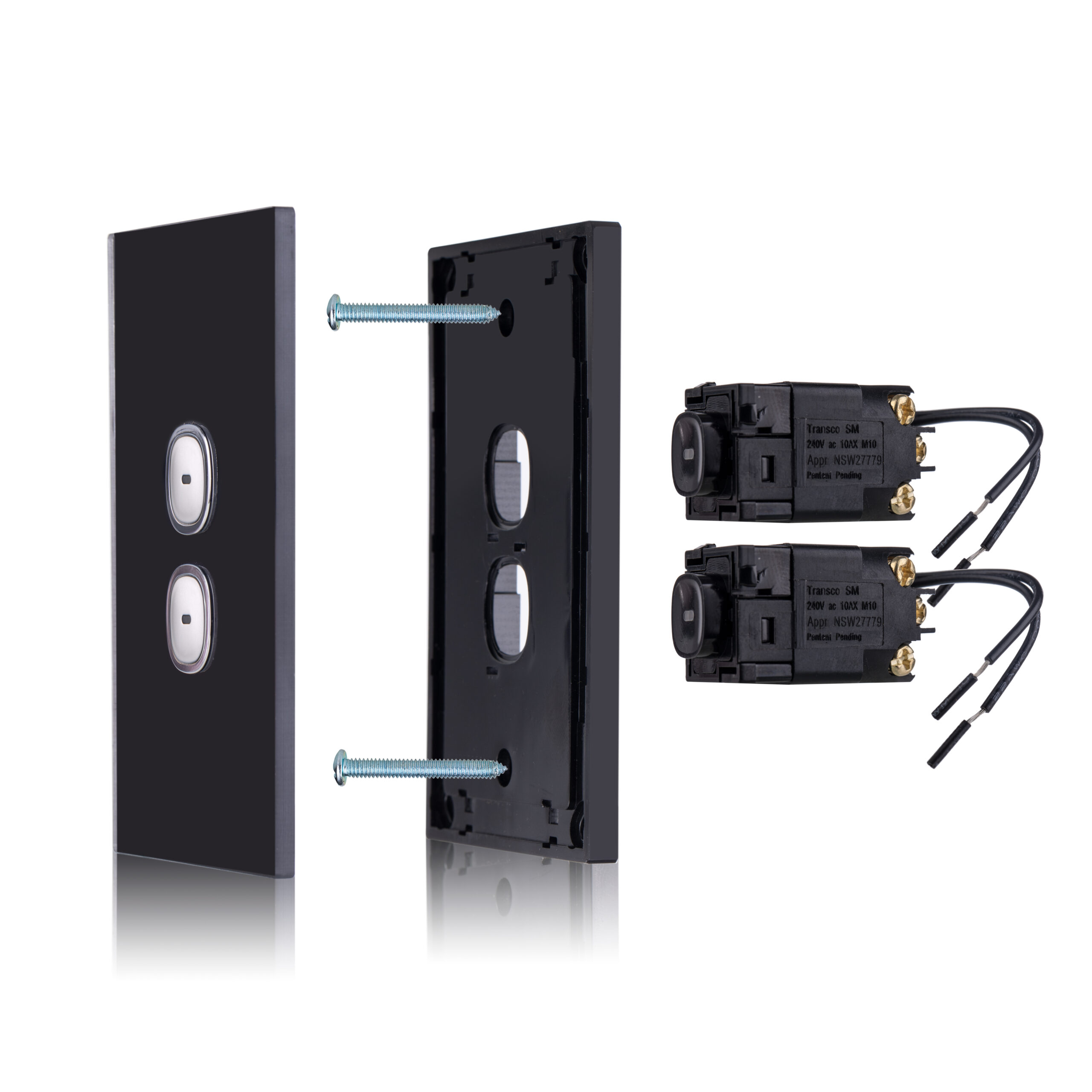 Transco Glass two gang switch with built-in LED push button black S2G/B?