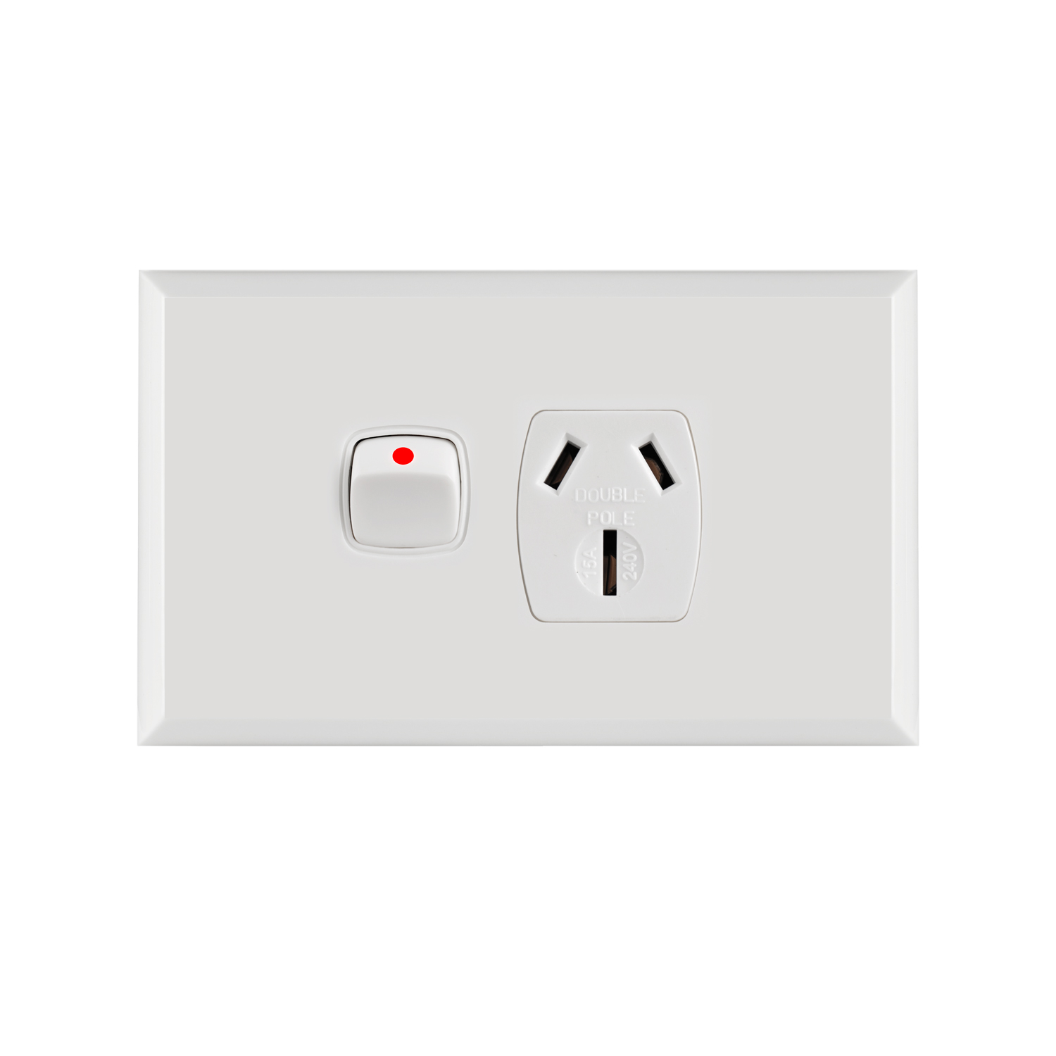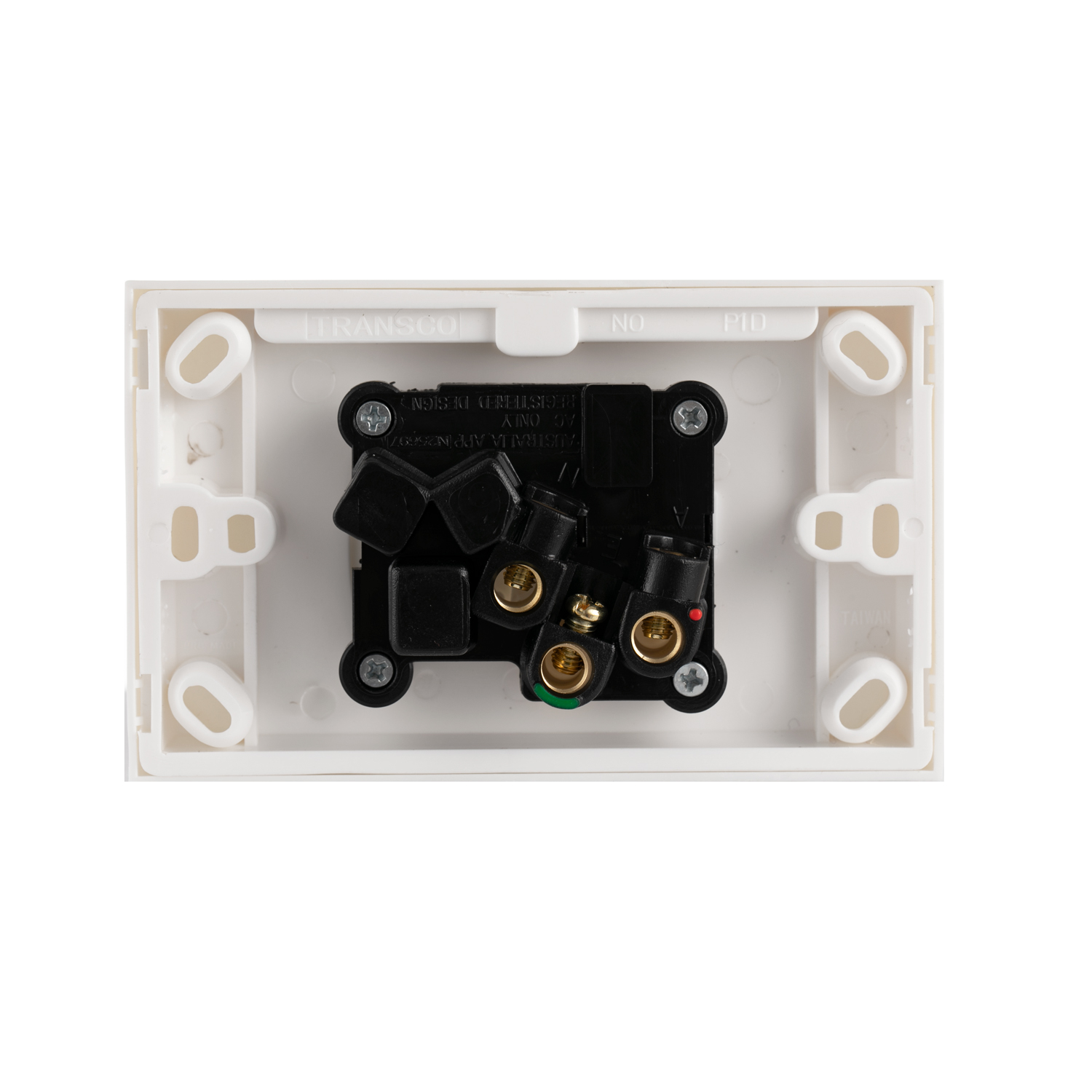 The Transco Power Point Single Double Pole 15a P1D15 is a single power point double pole rated at 240 Volt and 15 Amp. It is required for use in caravans, recreational vehicles, and trailers, and is also suitable for applications requiring extra protection in domestic, commercial, or construction environments. The unit has an Australian Approval Number – N25697, and silver covers are also available.
