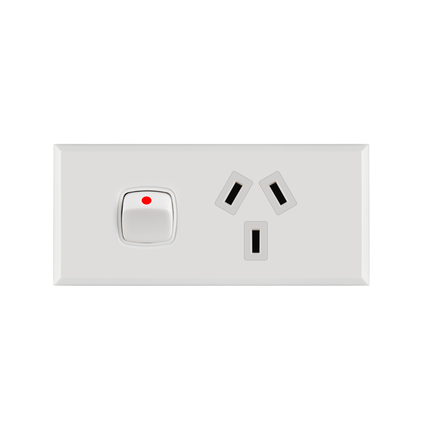 The Transco Power Point Single Narrow Powerclip P1N is a skirting single power point rated for 10 amps and 240 volts. Its dimensions are 98mm (L) x 45mm (W) x 30mm (H). It comes with individual packaging, screws, and a removable cover plate. The product has Australian and NZ approvals, with approval number N23737.
