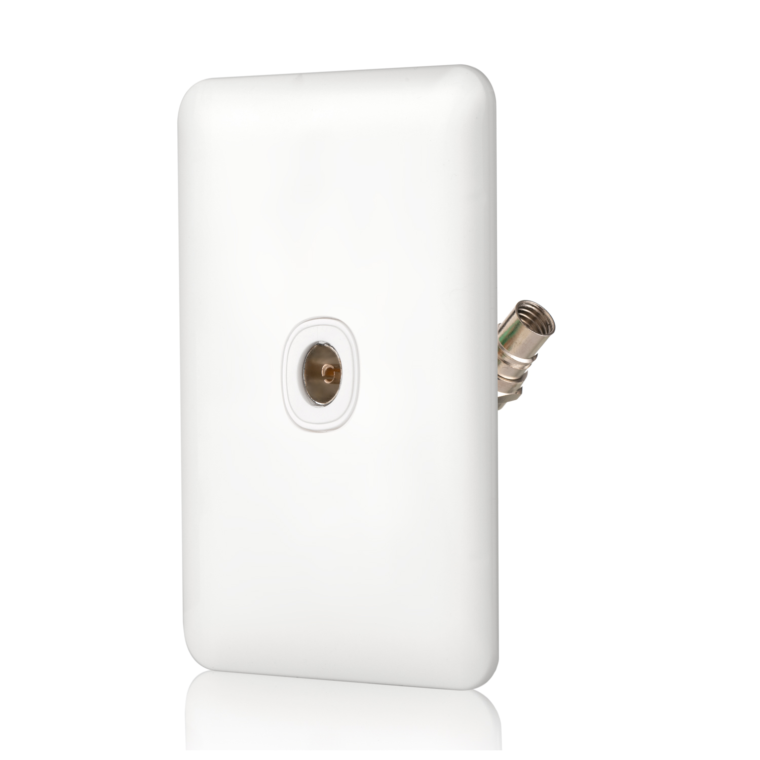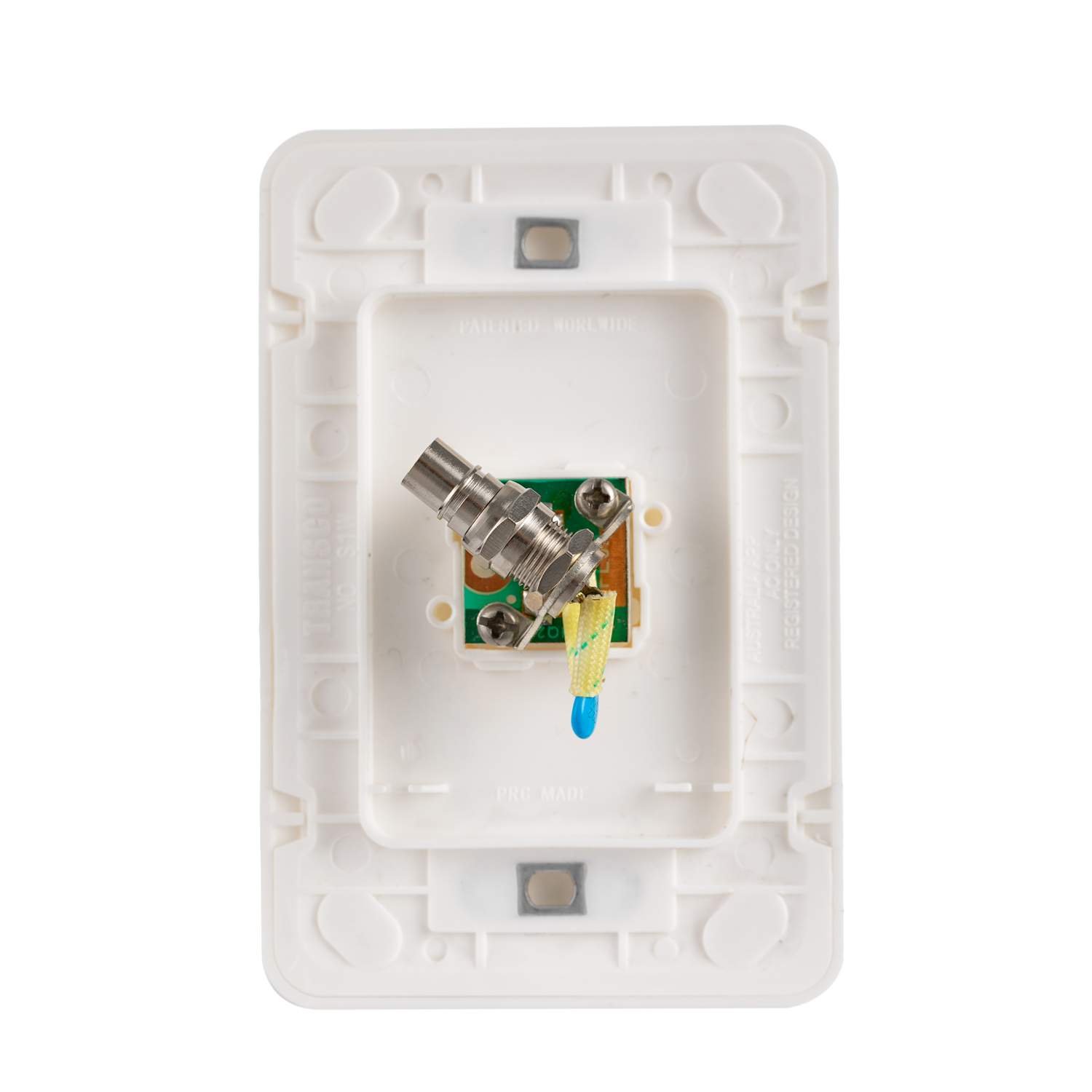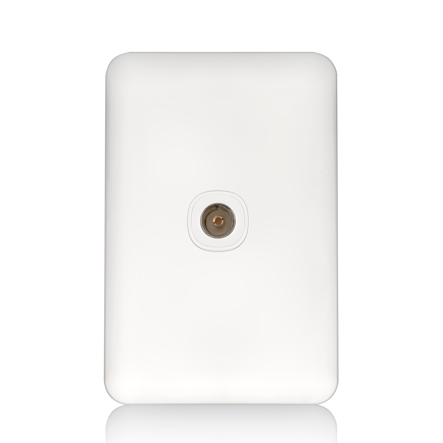 The Slimline F-Type to PAL TV Plate, model TVFPW, comes in electrical white and features a molded top cover and underbody made from impact-resistant polycarbonate. It has fixing centers of 84mm and dimensions of W72mm x L116mm x D20mm. The plate fits all general flush mount brackets on the market and is compatible with surface mount fittings for the Transco Wafer Series only.