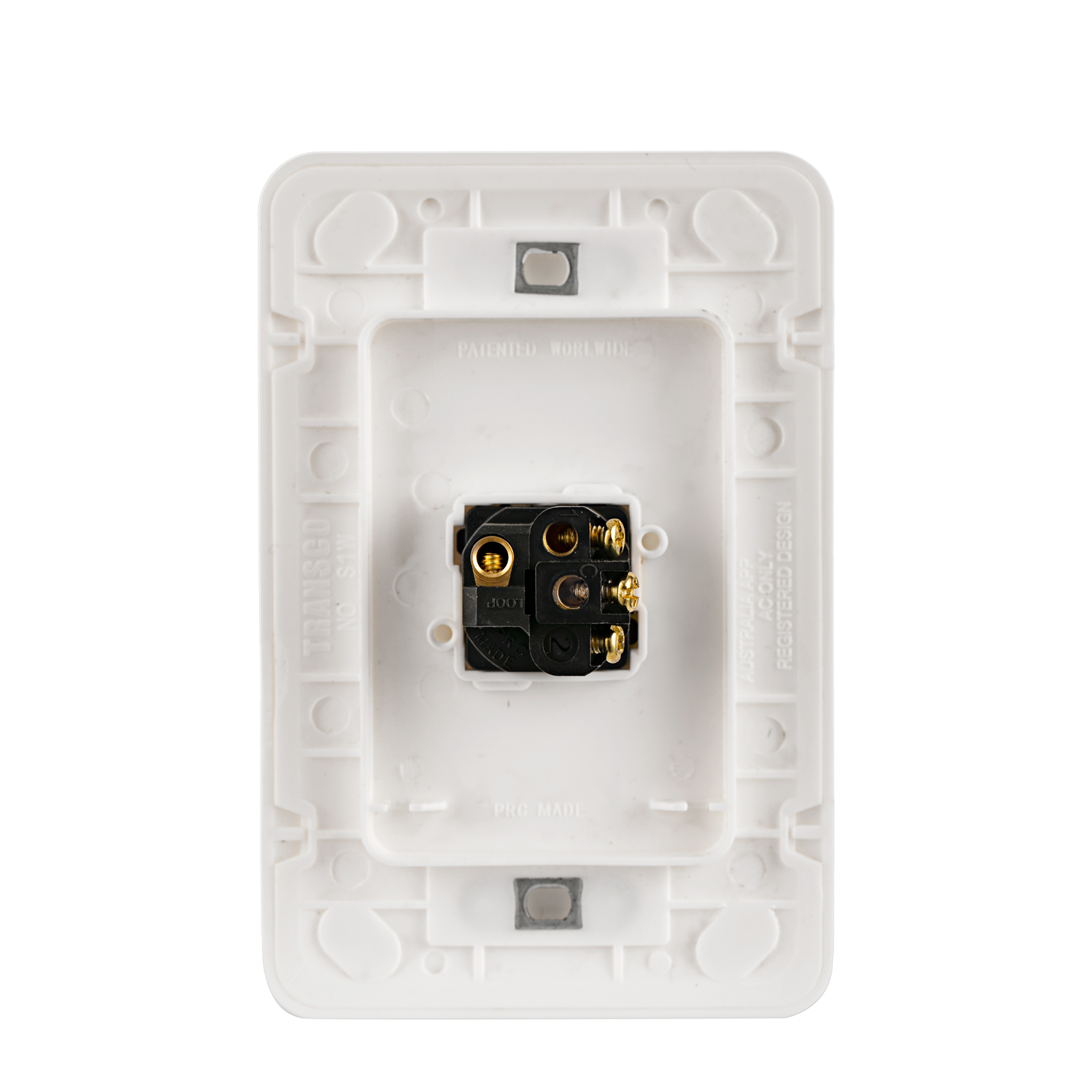 The Transco Switch 1 Gang 10a Slim Wafer S1W is a 10 Amp, 240 Volt switch, recognized as the world’s thinnest. It features a sleek, ultra-thin design with a 2 mm edge profile and is the only slim series switch that fits a standard plaster clip or bracket. Manufactured in accordance with AS/NZS3100 and AS/NZS3133 standards, it is available in silver and black, with optional mounting flanges in 10mm, 20mm, and 30mm for added height.