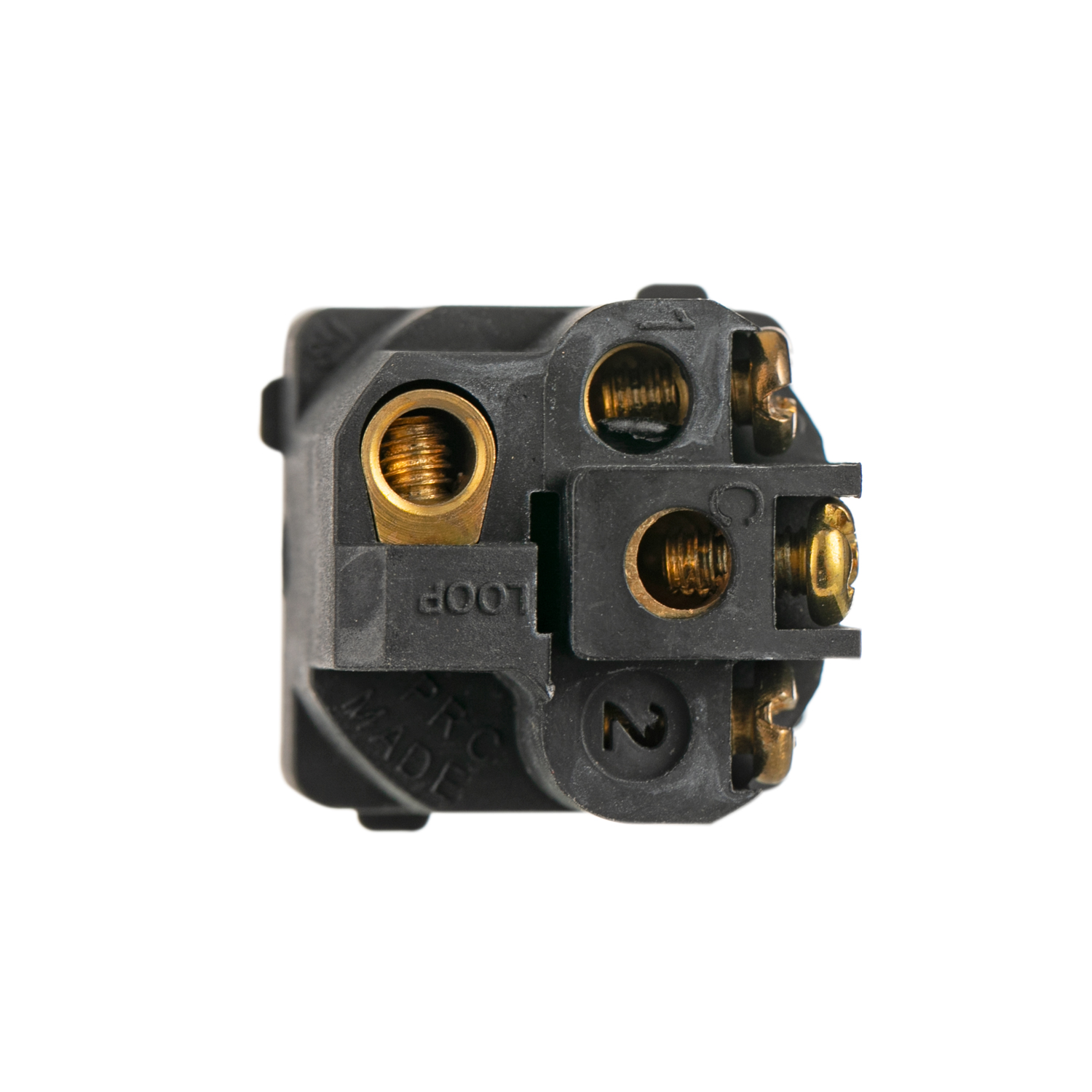 The Transco Switch Mech 15A Wafer SMW15 is a 15A, 240V switch that can be configured as either 1-way or 2-way. It features 4.1mm diameter terminal bores, accommodating 4 x 1.5mm² or 3 x 2.5mm² cables, fits into a 22mm diameter hole, and has an M rating of 90.