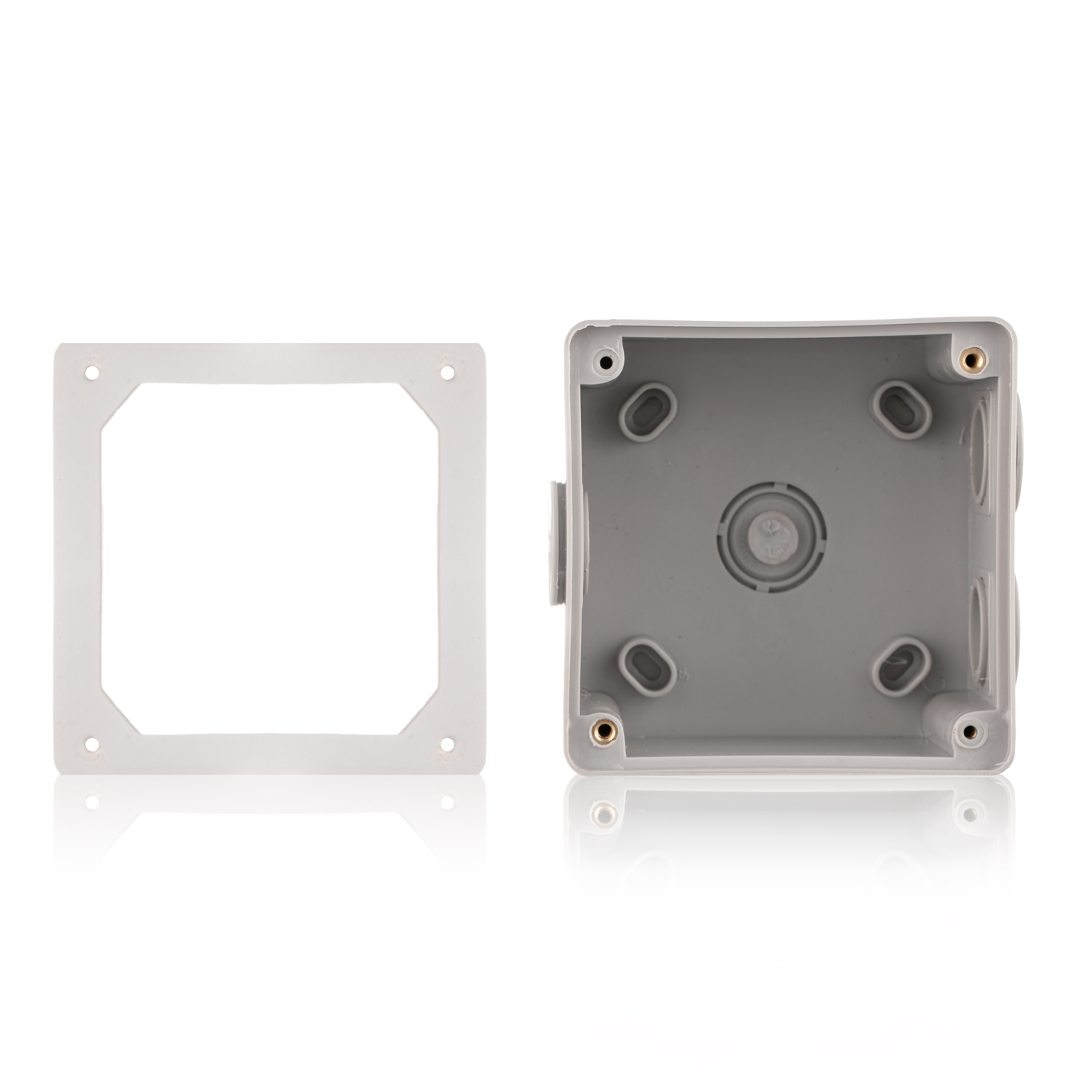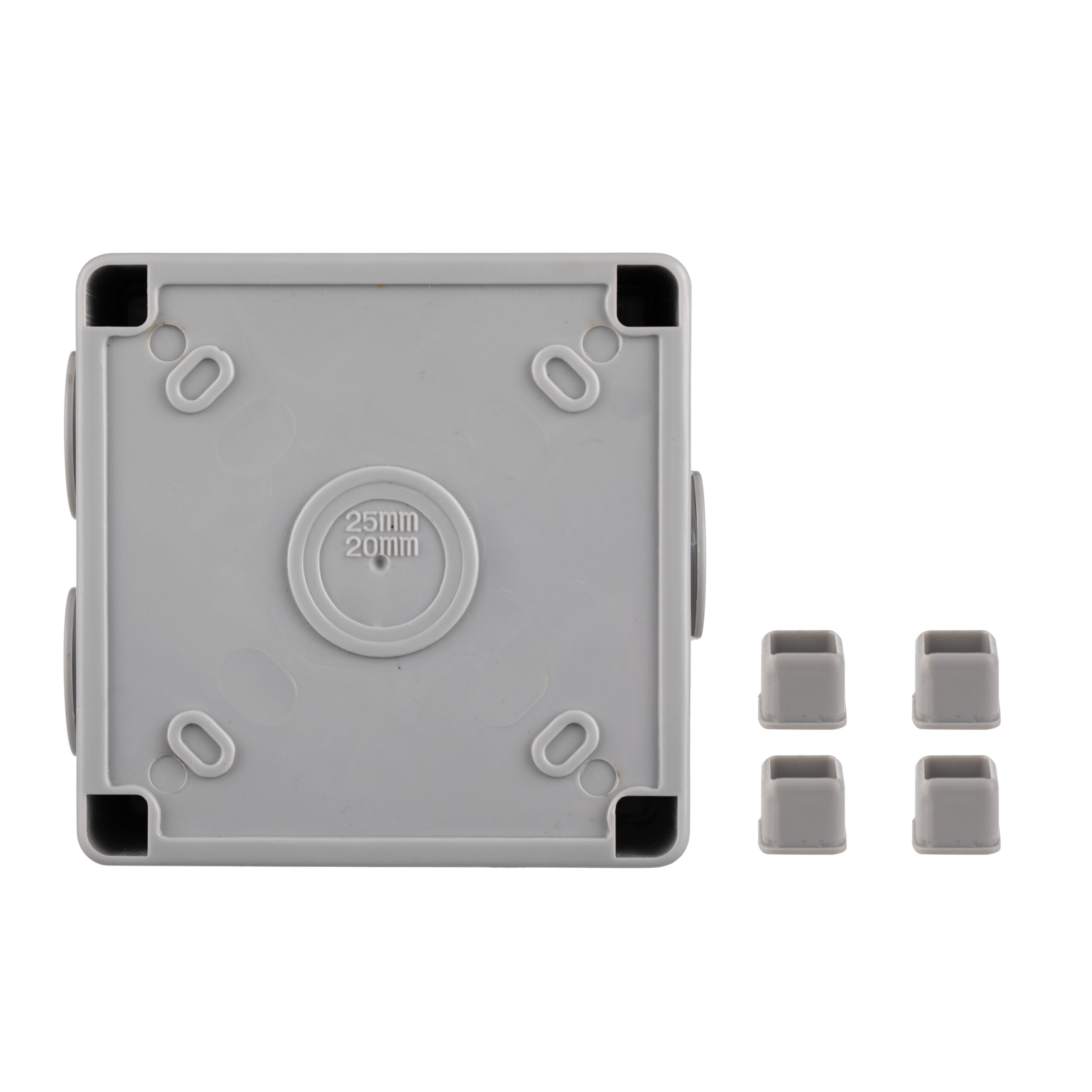 The Transco Isolation Switch 3 Pole 40A IP66 66S340 is designed for 500V use and provides IP66 protection. Made from UV-resistant polycarbonate and available in grey, this switch features a rotary knob for operation and functions as a 3-pole switch. It supports 6mm x 5 cables and allows for padlocking with up to 2 padlocks, each 8mm. The switch is labeled with ON-OFF and is intended for surface mounting with external installation. Its dimensions are 107mm in height, 101mm in width, and 101mm in depth, and it complies with AS/NZS 3122 standards.