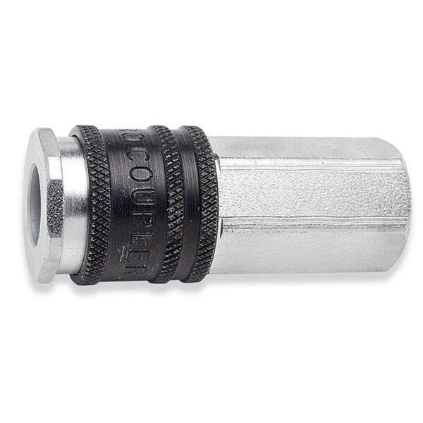 Durable steel EURO style compressed air coupling with 1/4″ BSP female thread, designed for high airflow pneumatic tools and compatible with EURO (CEJN) equivalent adaptors.