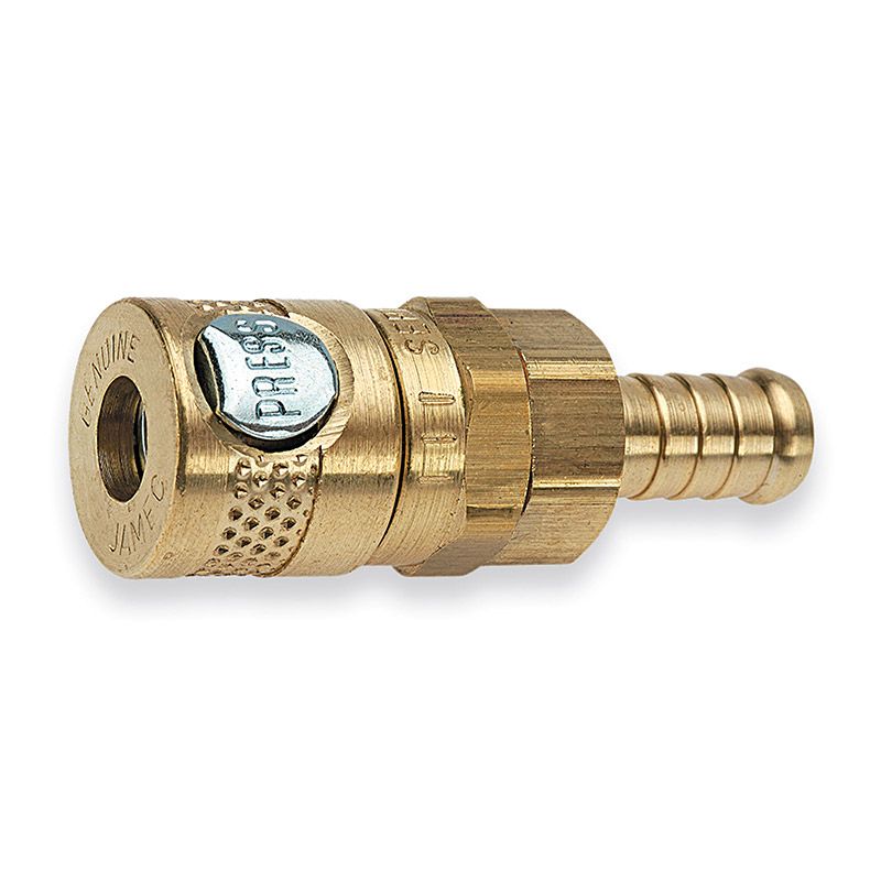 Jamec PEM couplings are manufactured to exacting standards and undergo continuous quality control to ensure consistent reliability across different airflow and pressure requirements. The coupling body is constructed from corrosion-resistant brass, while stainless steel internal components provide durability and resistance against wear and moisture within compressed air systems.