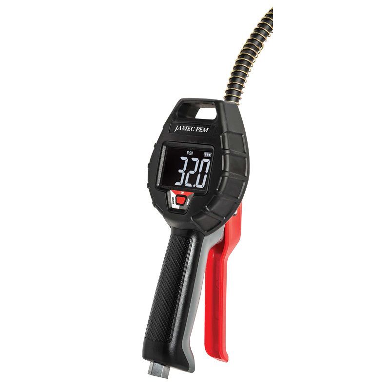 The Jamec PEM Digital Tyre Inflator ACS1500 delivers fast, accurate tyre pressure control for busy workshops, service bays, and industrial environments. Designed for professionals who rely on precise measurements, the inflator features a high-contrast VA black LCD display with white font, making readings clear and easy to view even in challenging lighting conditions. With display accuracy of ±0.1 psi and reading accuracy of ±1.0 psi, technicians can confidently inflate, deflate, or measure tyre pressure without second-guessing results. The high flow rate of 1200 L/min at 200 psi allows rapid inflation, reducing time spent on each job and keeping service workflows moving. Multiple pressure scales including psi, kPa, bar, and kgF provide flexibility across different equipment and vehicle requirements, while the clip-on chuck and 500 mm hose ensure secure, hands-free operation during use.