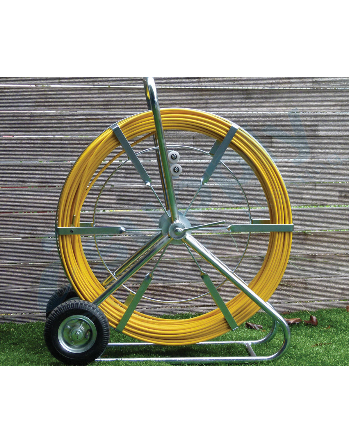Suitable for underground cables and conduit locating with the use of a suitable locatorSupplied complete with brass ends and hauling eye copper trace wire running through the core fitted to a sturdy zinc plated steel frame with brake