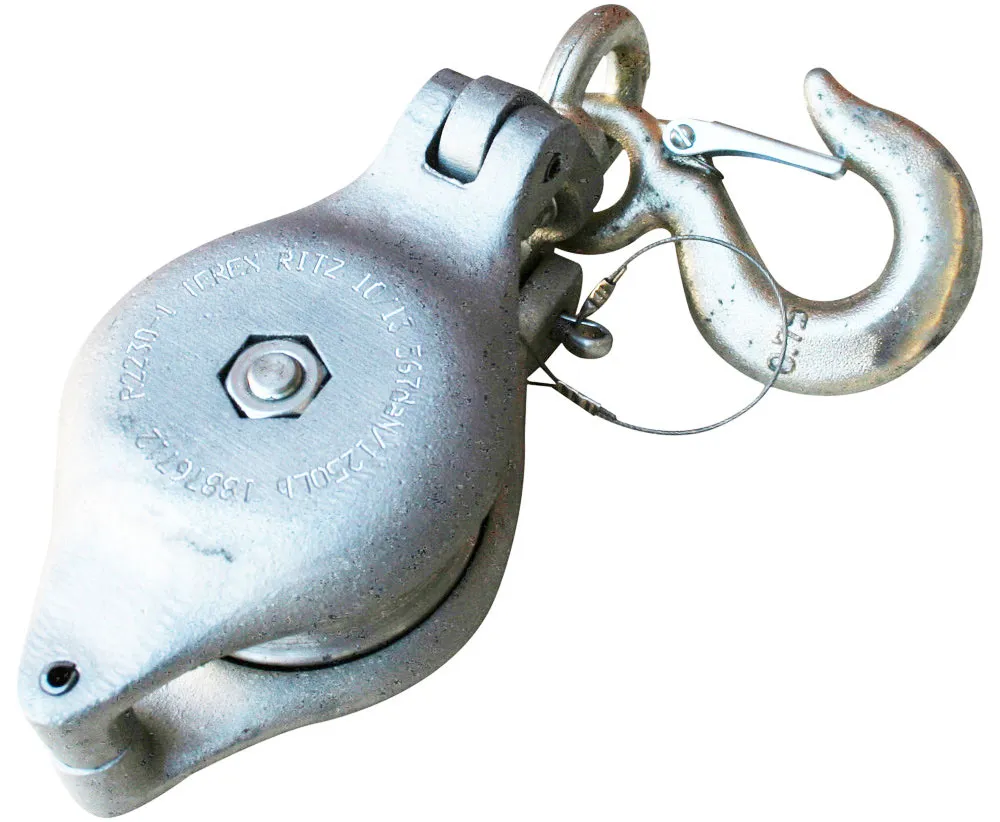 - Pulley (snatch block) for lifting and handling loads during construction and maintenance on electrical systems