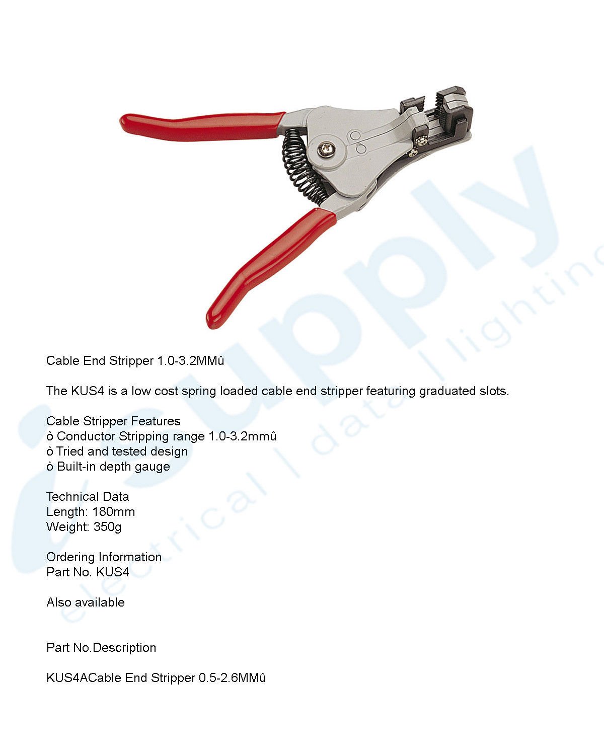 The KUS4 is a low cost spring loaded cable end stripper featuring graduated slots.