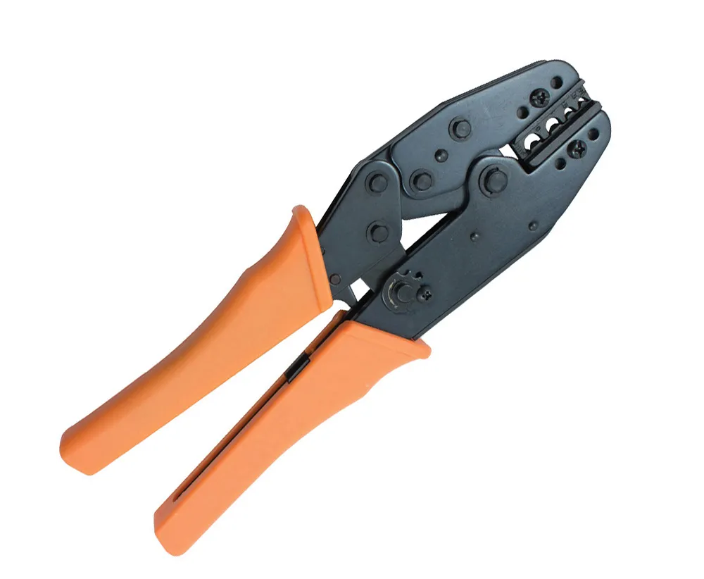 Low-cost ratchet lug crimper. Indent crimper for copper lugs 1.5-10 mm?. Ratchet operation ensures correct crimp and reduced hand effort.