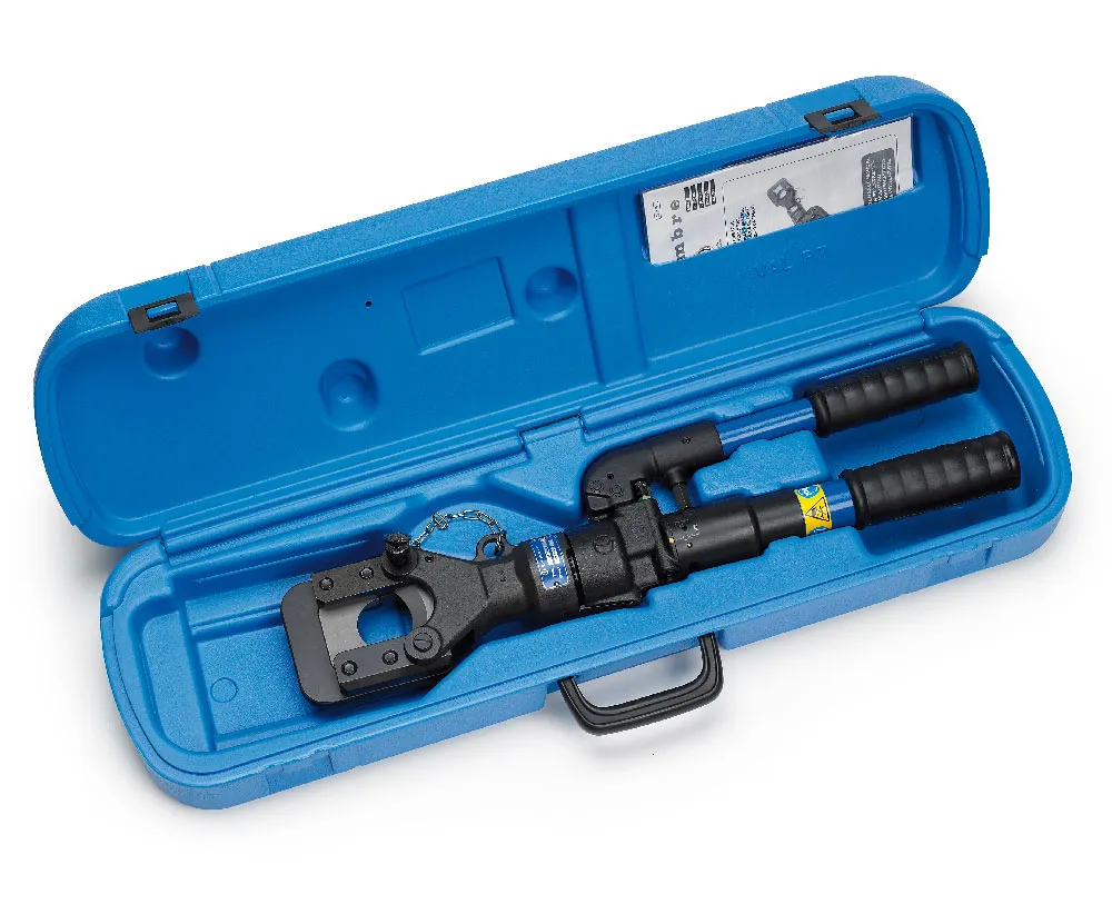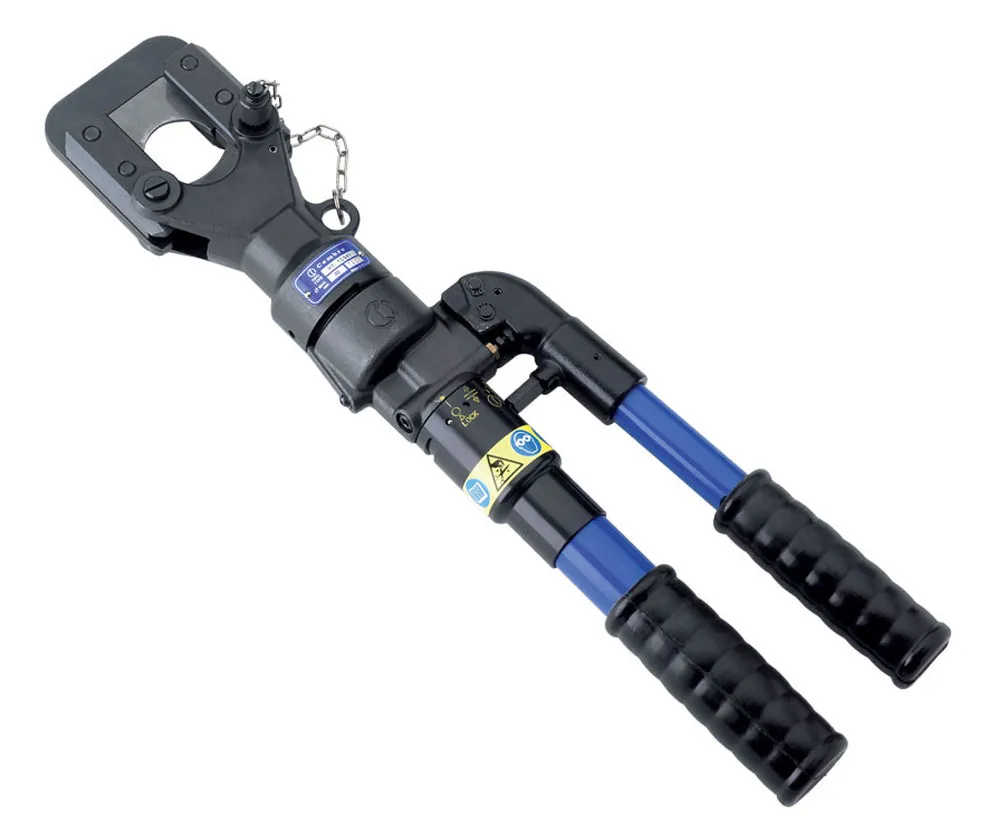 This Cembre hand operated hydraulic tool is specifically designed to cut copper, aldrey, aluminium, aluminium-steel cables, and steel ropes, aluminium and steel rods having a max overall diameter of 45 mm.