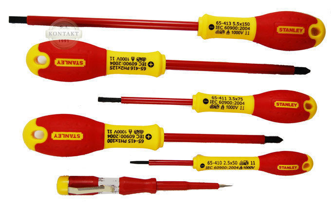 The Stanley 0-65-441 VDE FatMax Scewdriver Insulated Phillips & Parallell 6 Piece set contains: