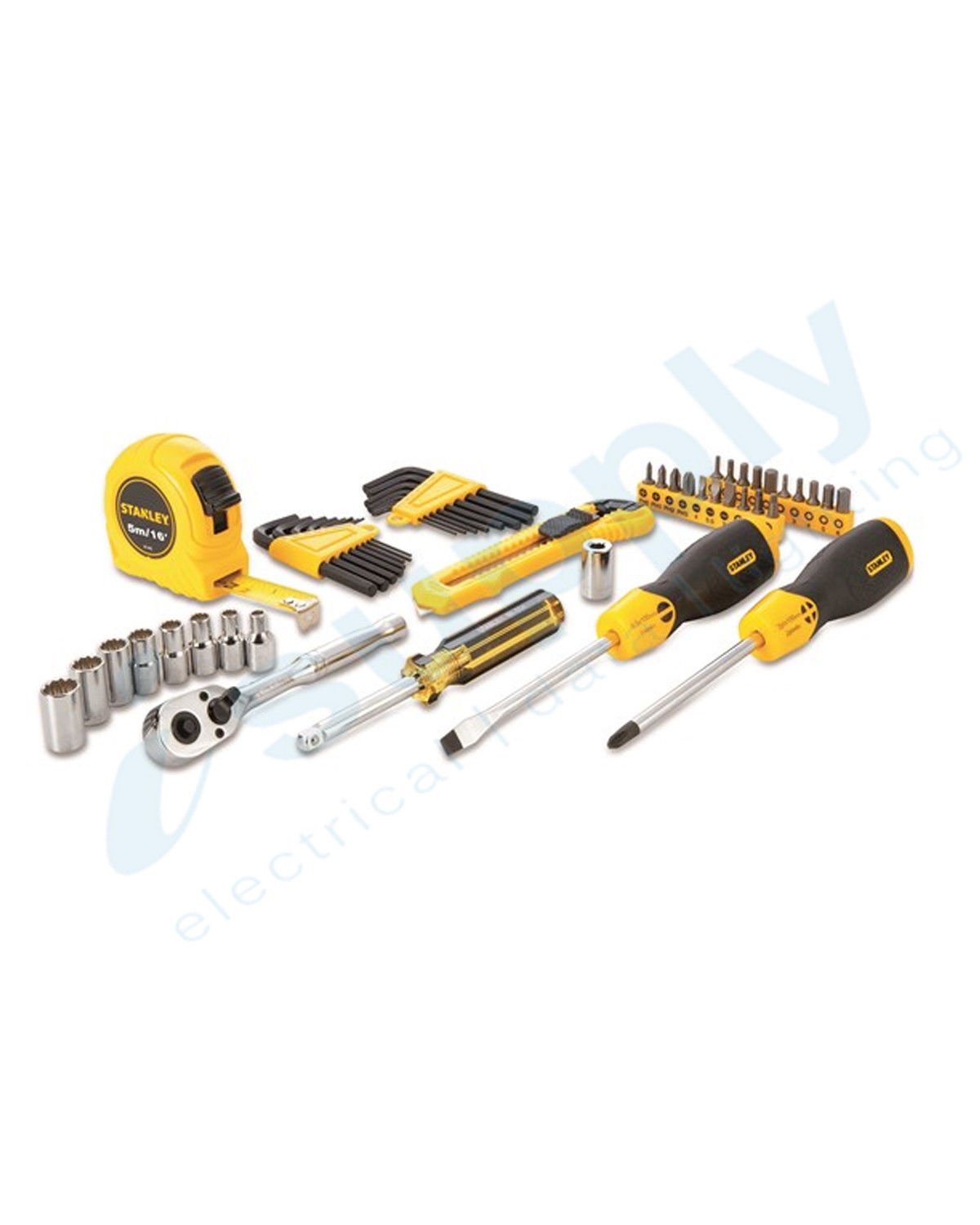 Components Included: 1 18 mm Cutter; 1 Measure 5 m; Philips screwdriver; 1 standard screwdriver; 1 1/4 ratchet with 8 sockets 4mm,5mm,5.5mm,6mm,7mm,8mm,9mm,10mm; 1 bit screwdriver with 20 bits; 1 set of 16 male keys; 1 bit screwdriver with 5 bits
