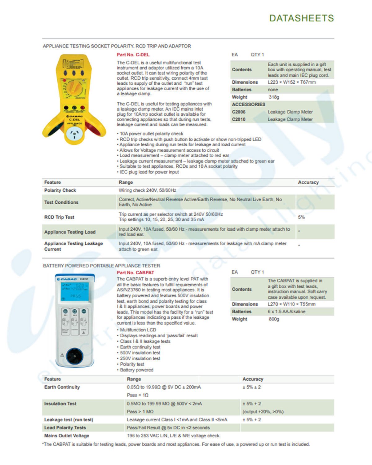 CABAC BATTERY POWERED APPLIANCE TESTER CABPAT