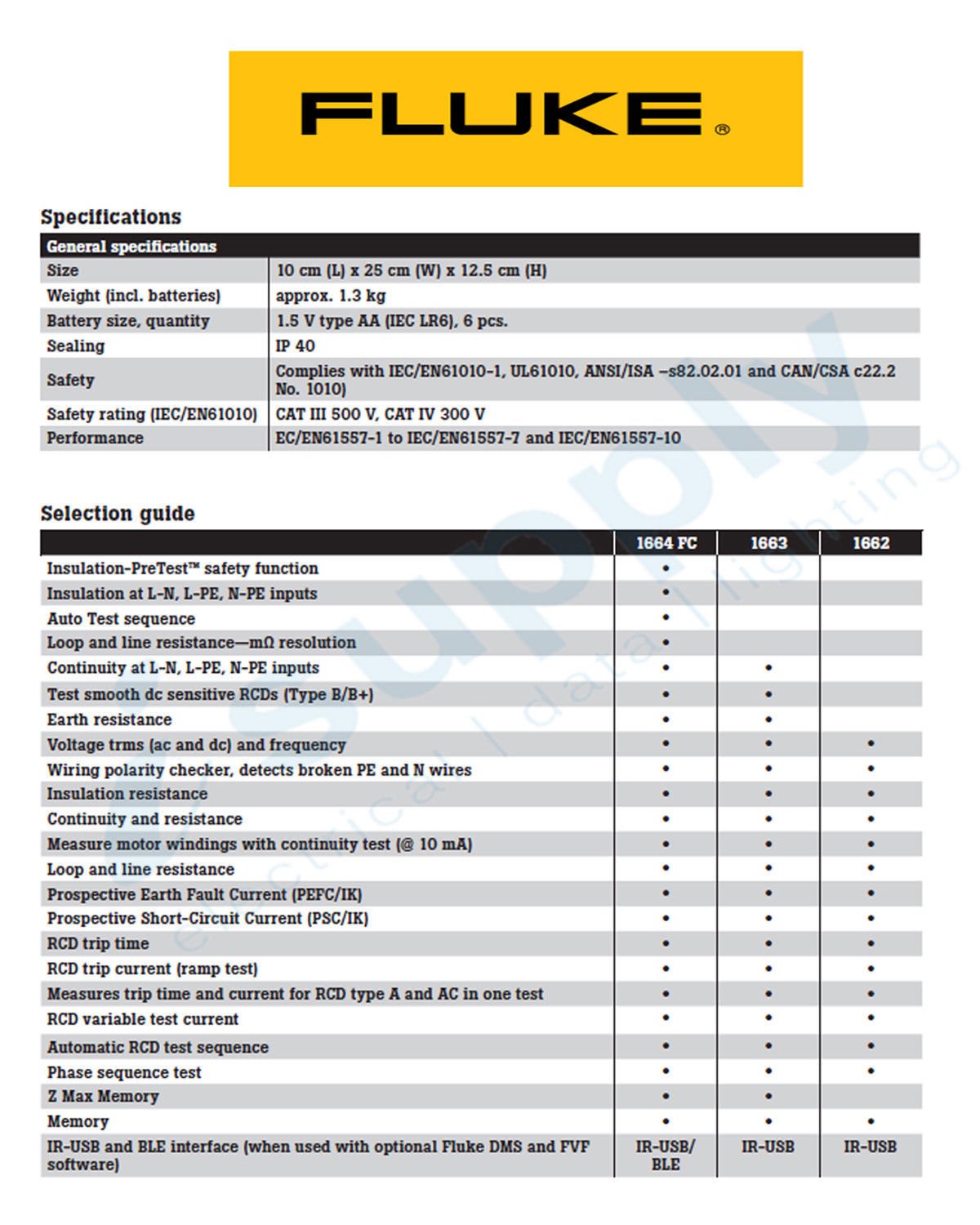 • Supplied with the safety designed SureGrip™ test leads and clips which gives the user a comfortable, reliable grip and consistent results.
