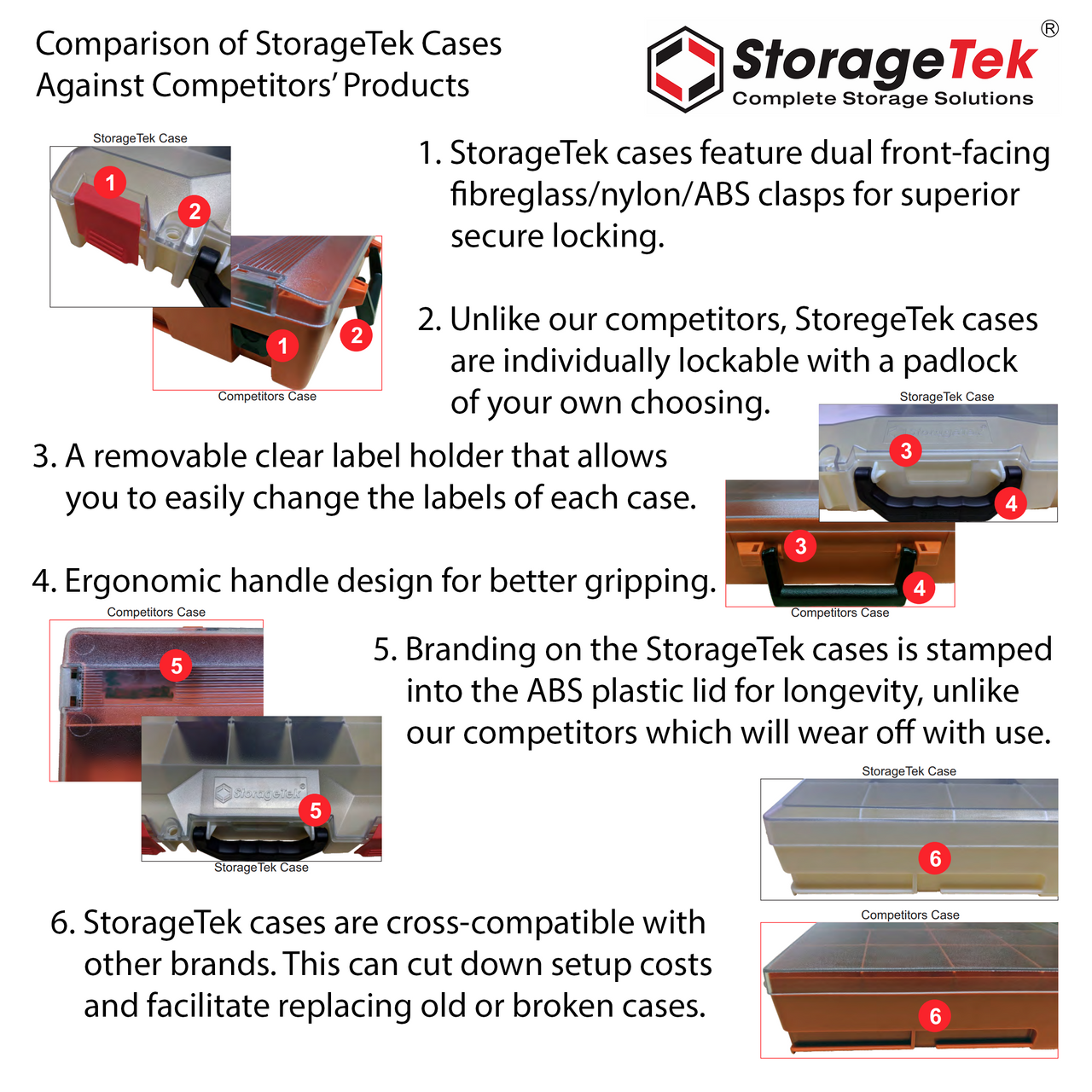 - All cases have a Clear Ultra High Strength PC Lid as standard and not ABS as others.