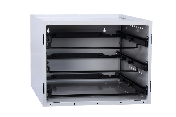 SCS3S StorageTek Storage Cabinet suitable for 3 small cases. Can be customized with StorageTek Blue, Grey, Black or Red coloured cases with a solid ABS Lid or a clear PC lid or other leading brands into our empty cabinet. These cabinets are suitable for Electricians, Plumbers, Data Cable installers, HVAC, TV Antenna Installers, Mechanics and many others in business, office, workshop or at home. All cabinets come with L shaped mounting feet and appropriate hardware to allow secure mounting in a van or onto a workbench or even under a workbench. Commercial build quality.