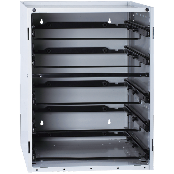 SCS5S StorageTek Storage Cabinet suitable for 5 small cases. Can be customized with StorageTek Blue, Grey, Black or Red coloured cases with a solid ABS Lid or a clear PC lid or other leading brands into our empty cabinet. These cabinets are suitable for Electricians, Plumbers, Data Cable installers, HVAC, TV Antenna Installers, Mechanics and many others in business, office, workshop or at home. All cabinets come with L shaped mounting feet and appropriate hardware to allow secure mounting in a van or onto a workbench or even under a workbench. Commercial build quality.