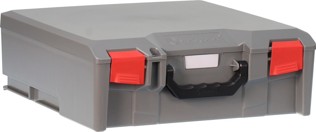StorageTek Case STL-GY. This is a large ABS Gray Case with a solid ABS colored lid. These cases are suitable for Electricians, Plumbers, Data Cable installers, HVAC, TV Antenna Installers, Mechanics and many others in business, office, workshop or at home. A visually styled outlook providing a true tradesman carry and storage case for all their parts