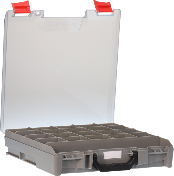 - Superior firm fiberglass reinforced locking clasp on front and visually styled outlook providing a true tradesman carry and storage case for all their parts. Very firm locking to give peace of mind and comfort its securely closed.