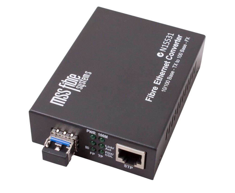 - Converts: 100BASE-TX (Copper) to 100BASE-FX (Fibre)