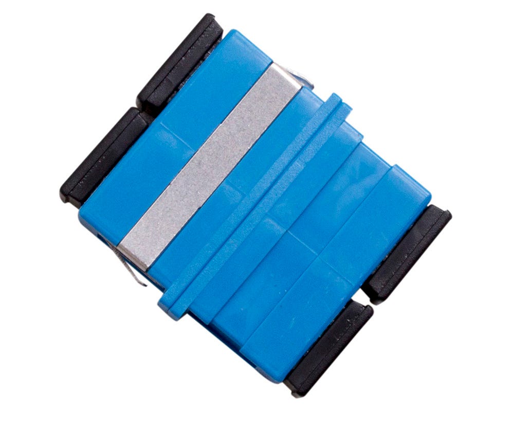 SC singlemode duplex fibre adaptor with ceramic sleeves and secure metal clip design for reliable, compliant, and fast panel installations.
