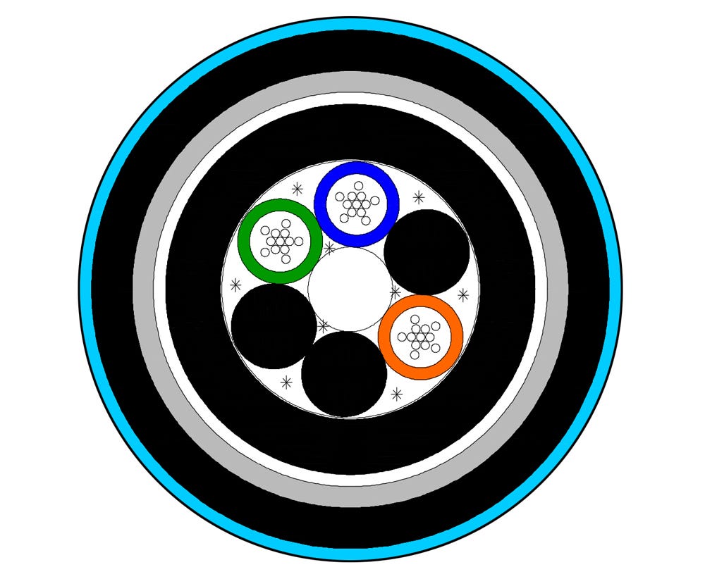 This loose tube construction features an outer termite/UV resistant Polyamide Nylon jacket and rodent resistant Corrugated Steel Tape Armour.