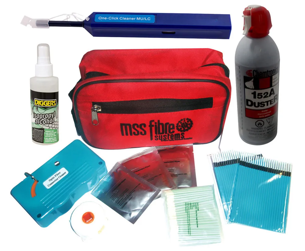 Includes all the standard components needed to clean fibre connectors prior to installation with Telco’s in mind