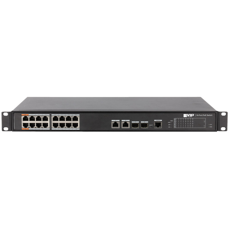 The VSPOE-SWA16 is a rackmount, fast Hi-PoE switch in 16 ports. It is a versatile networking solution with flexibility for a range of high-powered PoE devices & a variety of uplink ports. It is an L2 managed switch, offering configuration of network traffic quality of service, VLAN and a suite of other features.