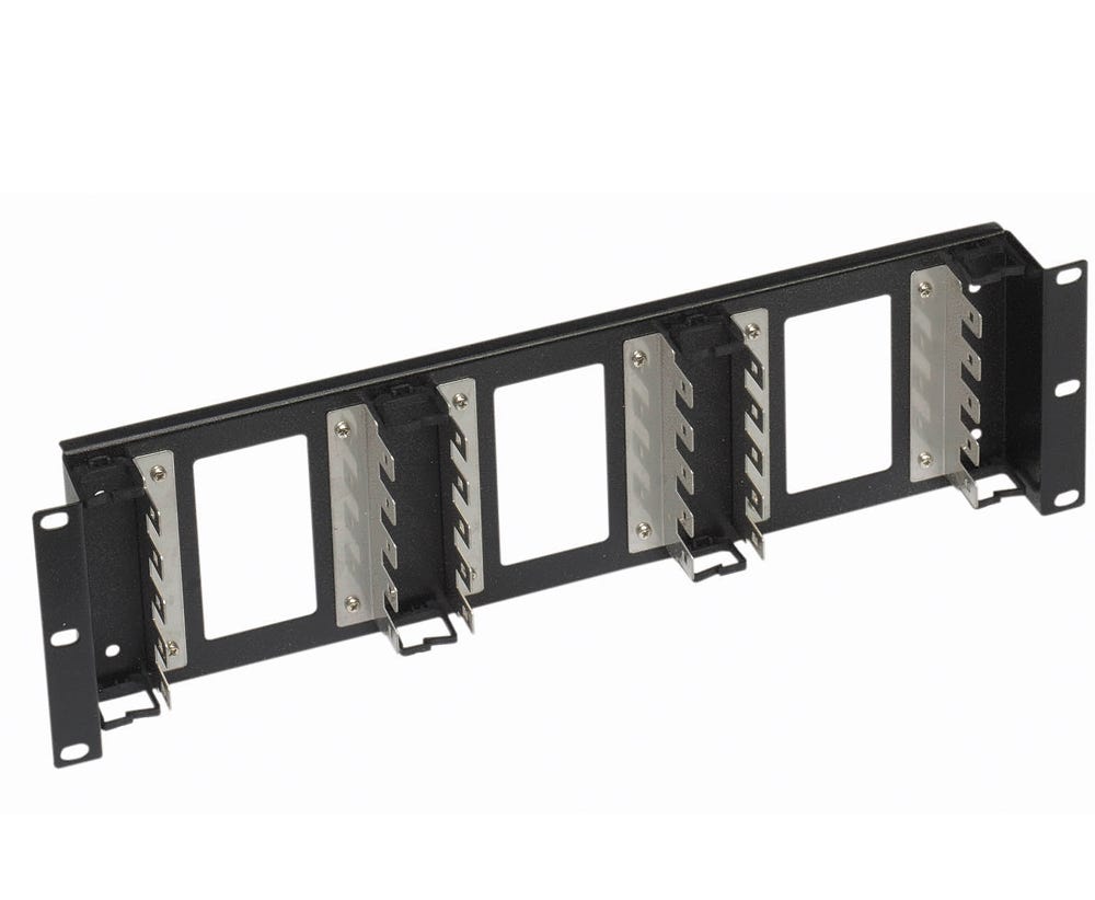 The frame is recessed to allow better clearance of doors on rack and features 15 Backmount module attachment points (140 Pairs).