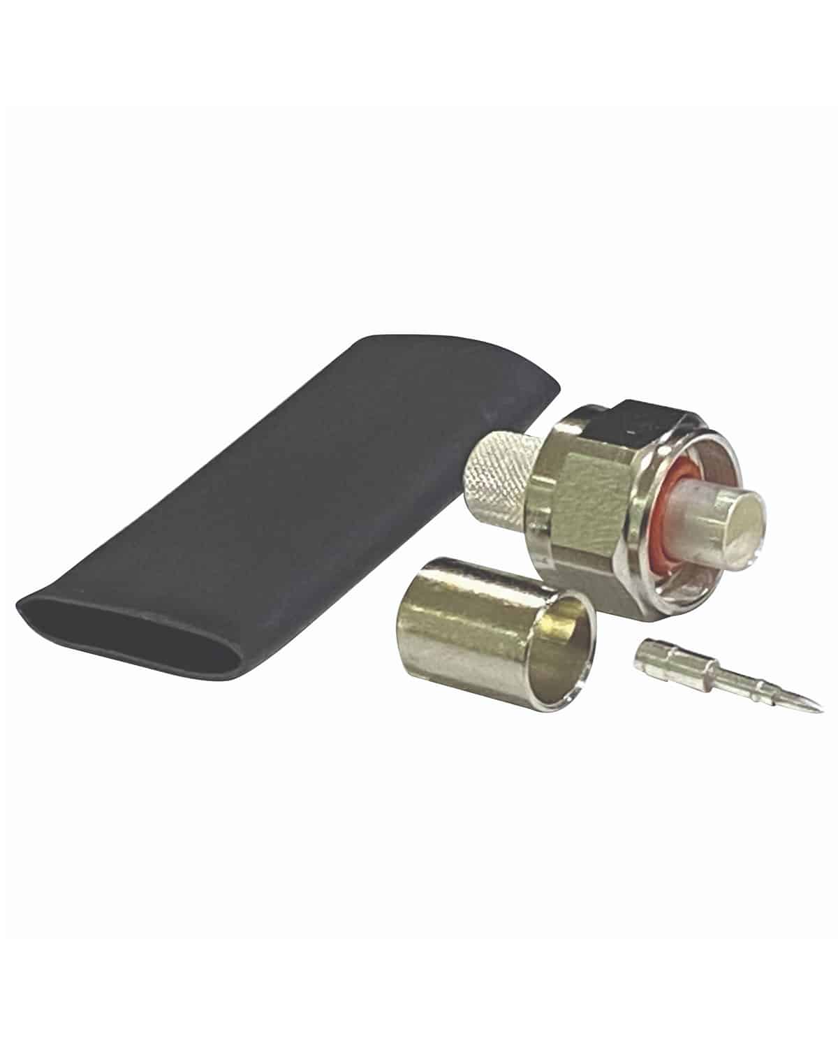 The N400SP is a Spinner brand straight N-Type Connector for 10mm solid core 50ohm coax LL400/LMR400 and similar, crimp inner & crimp outer. PTFE dielectric and internal silicon rubber gasket plus outer heatshrink for waterproofing
