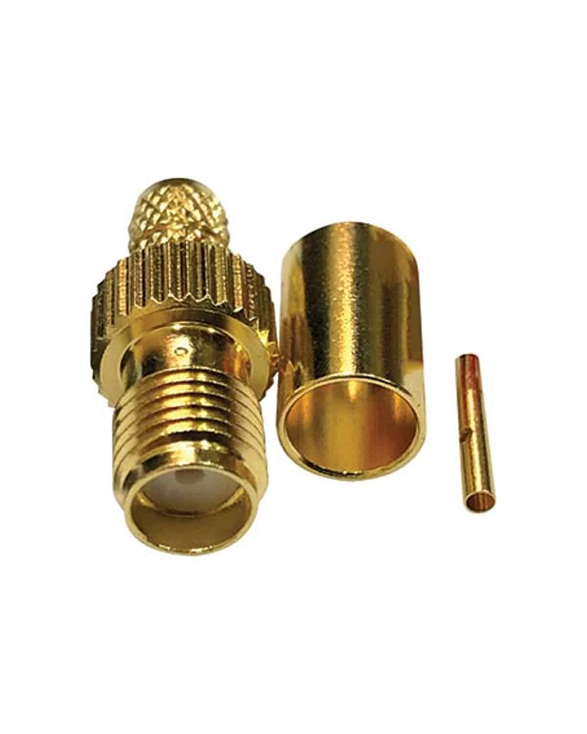 The SMA58F is a sub-miniature version A crimp style 50Ω SMA socket coaxial connector. This quality brass connector has a Gold plated finish, Gold plated centre pin and has a PTFE dielectric.